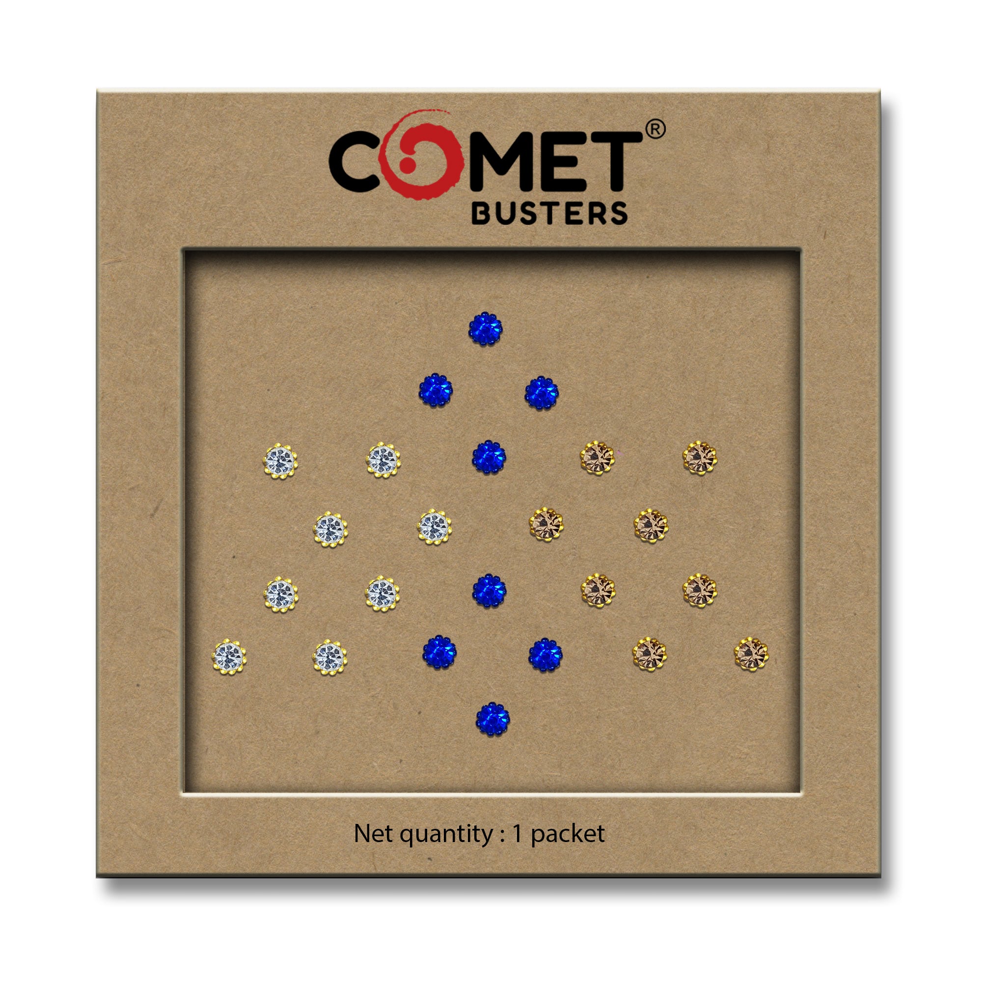 Comet Busters® Multicolor, Blue, Silver, Gold Diamond Dot – Diamond – Handcrafted, Reusable & Skin-Friendly Bindis for Casual Wear (3mm) – Forehead Bindi Stickers for Women & Girls – BIN093