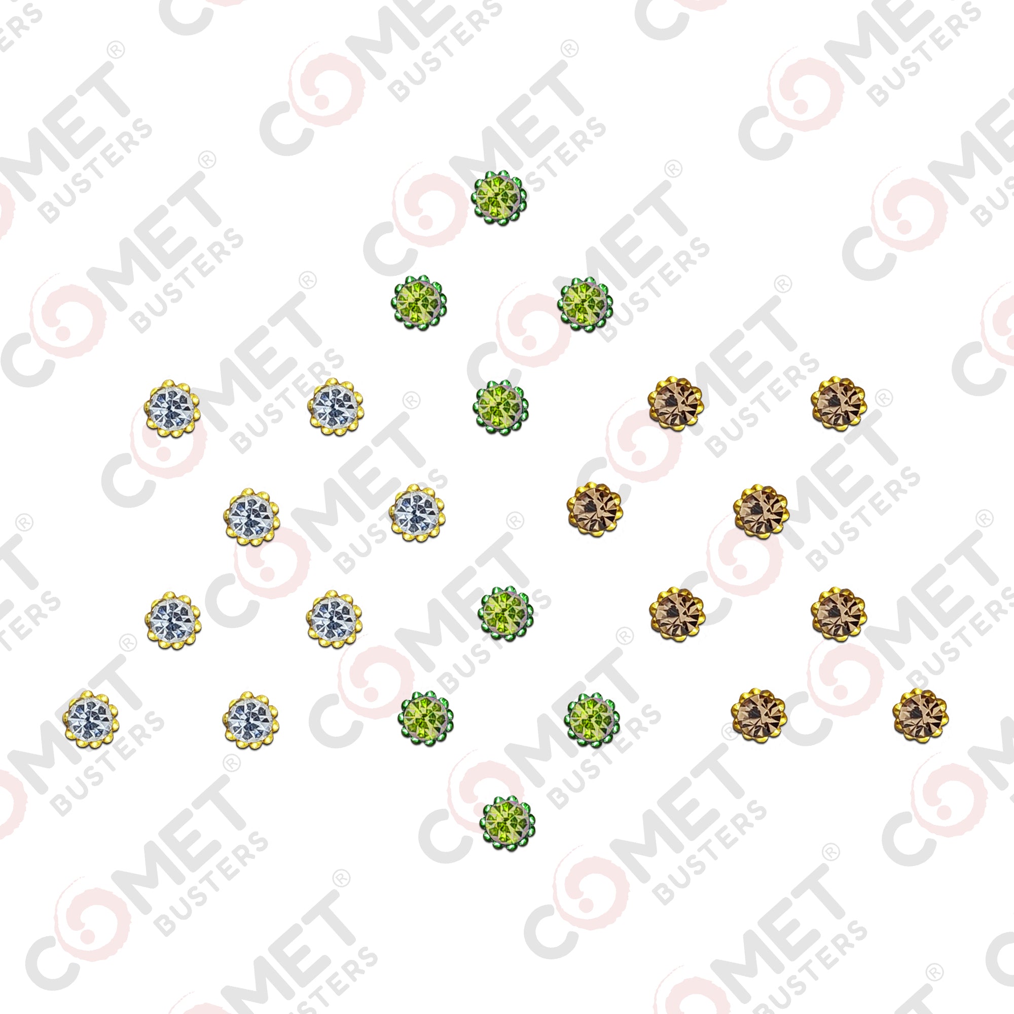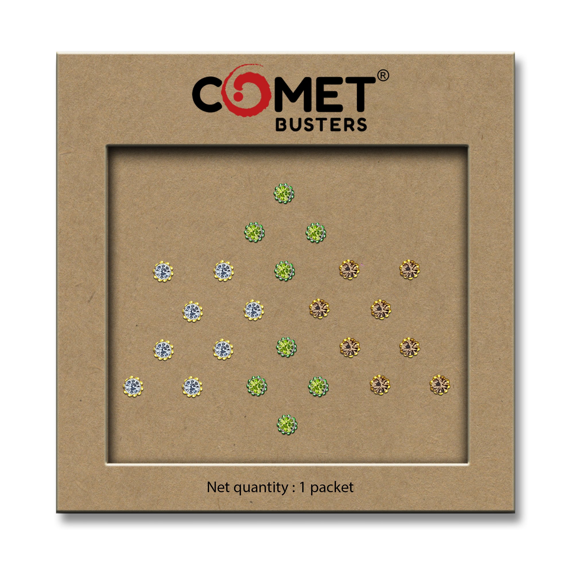 Comet Busters® Multicolor, Green, Silver, Gold Diamond Dot – Diamond – Handcrafted, Reusable & Skin-Friendly Bindis for Casual Wear (3mm) – Forehead Bindi Stickers for Women & Girls – BIN082
