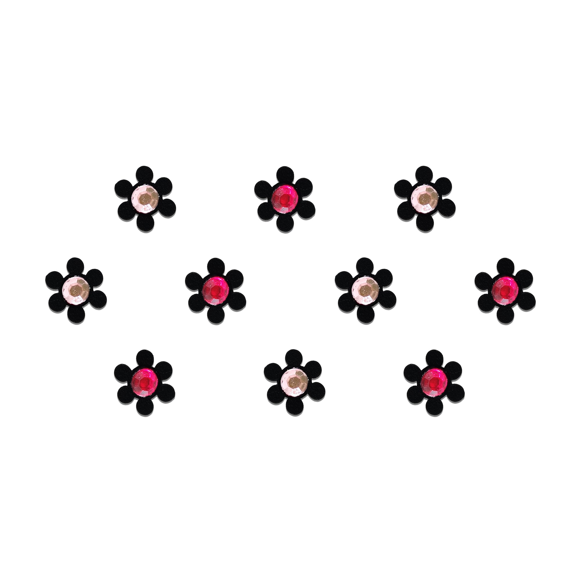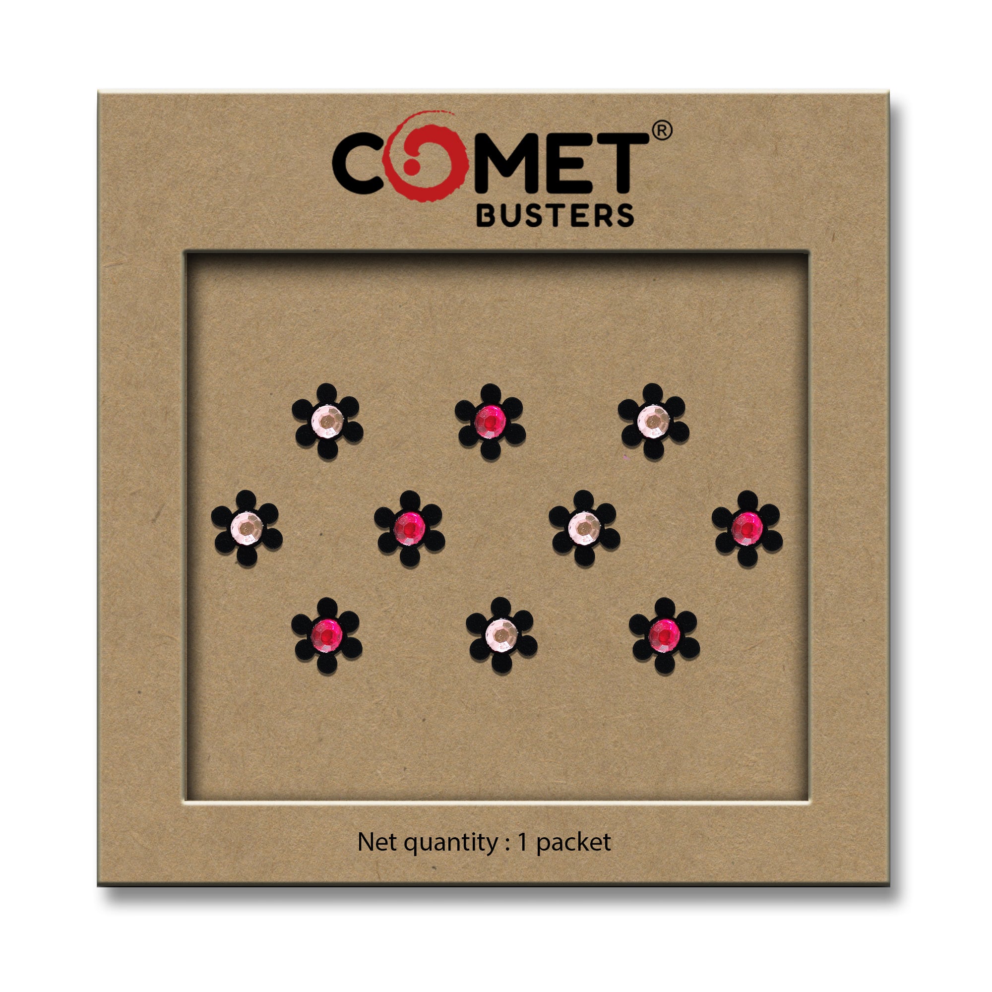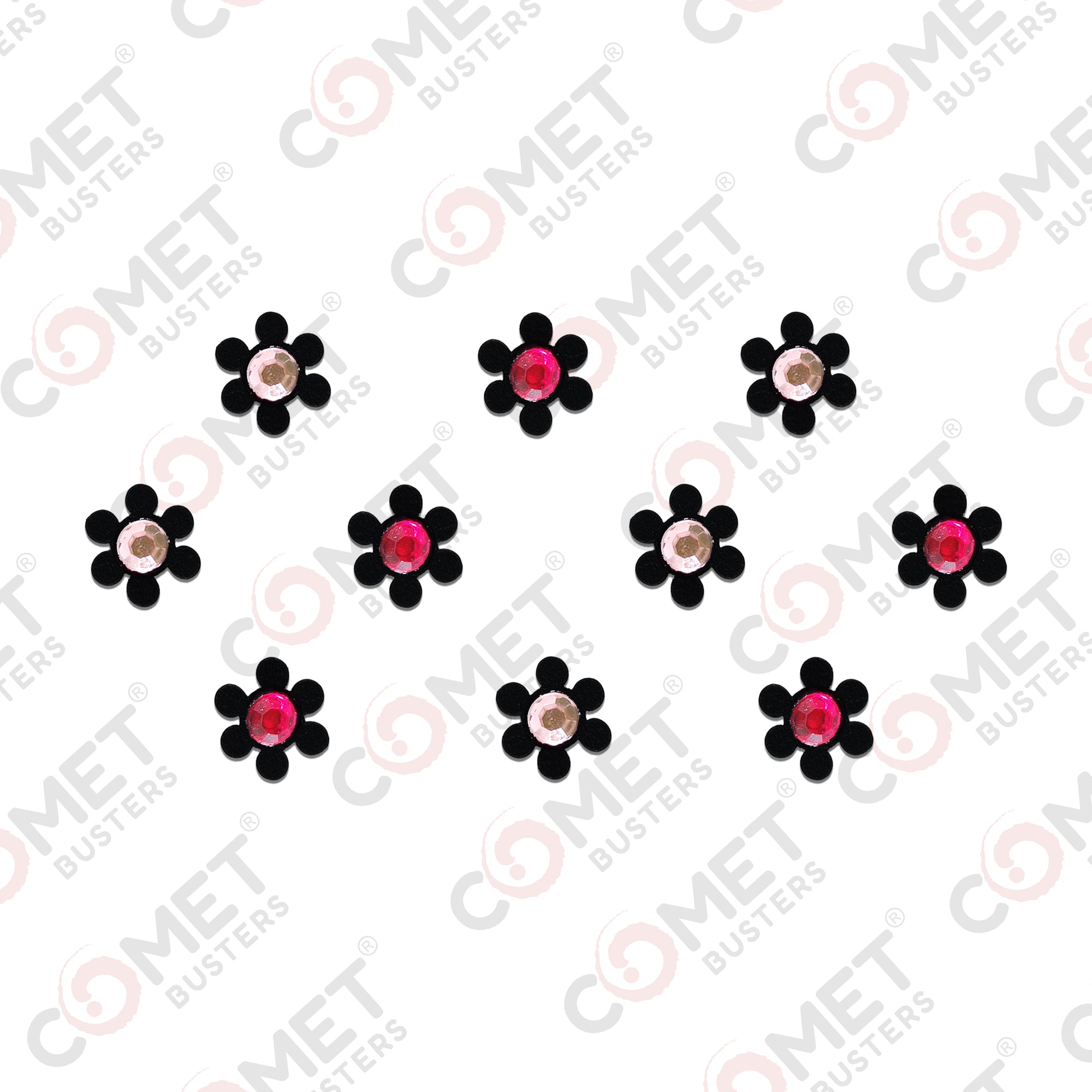 Comet Busters® Multicolor, Pink, Red, Black Floral – Diamond, PVC – Handcrafted, Reusable & Skin-Friendly Bindis for Casual Wear (8mm) – Forehead Bindi Stickers for Women & Girls – BIN250
