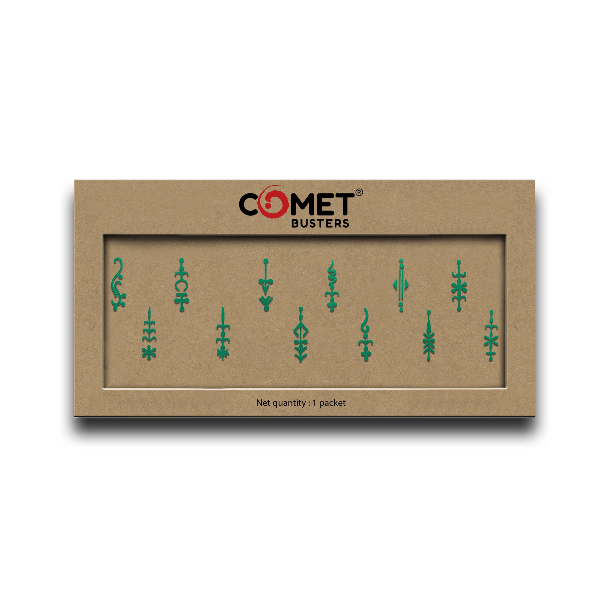 Comet Busters® Green Fusion Abstract Bindis – PVC – Handcrafted, Reusable & Skin-Friendly Bindis for Casual Wear (22mm) – Forehead Bindi Stickers for Women & Girls – BIN713