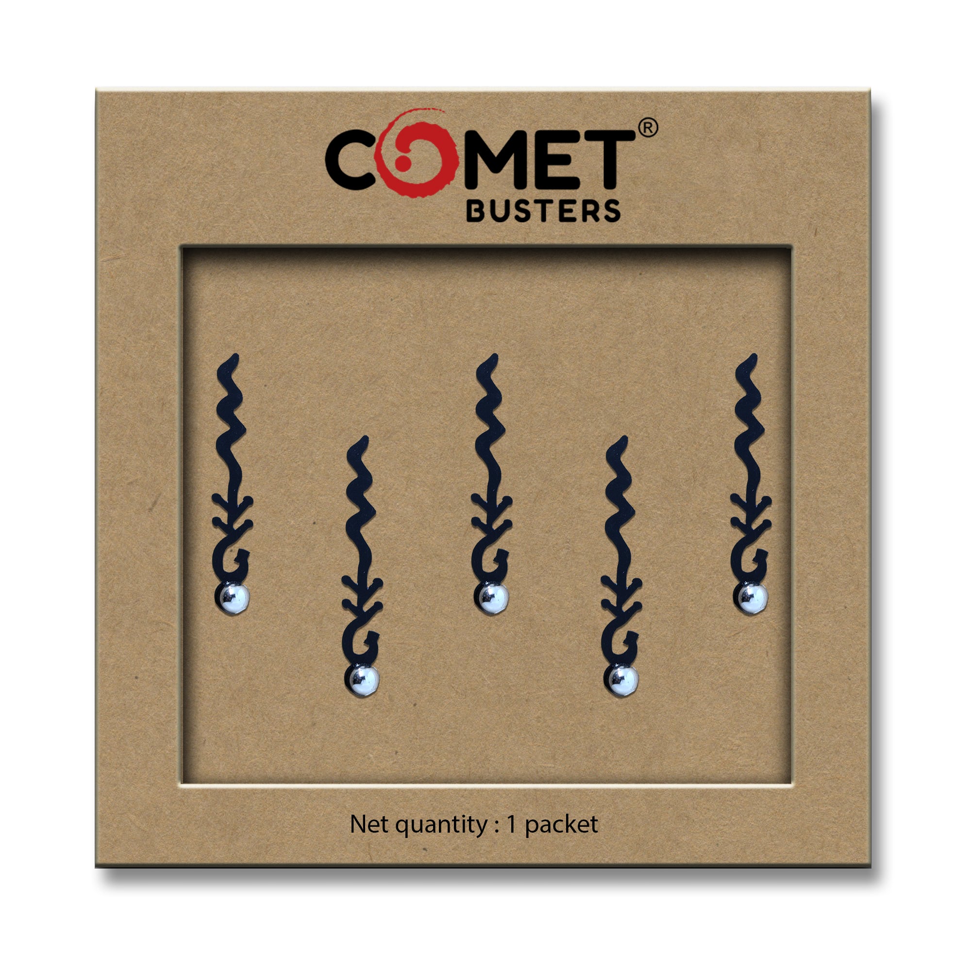 Comet Busters® Black Artistic Abstract Bindis – Shiny Beads, PVC – Handcrafted, Reusable & Skin-Friendly Bindis for Partywear Wear (25mm) – Forehead Bindi Stickers for Women & Girls – BIN722