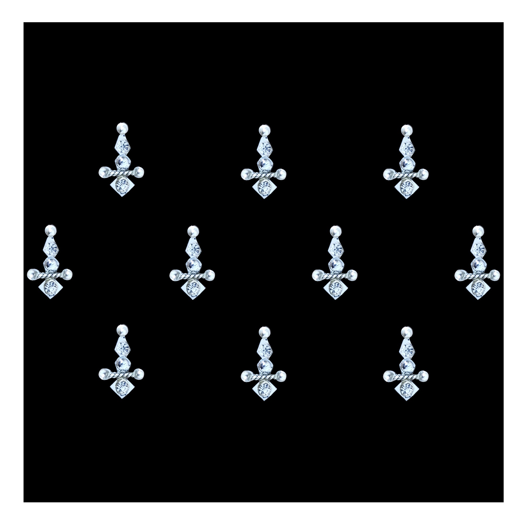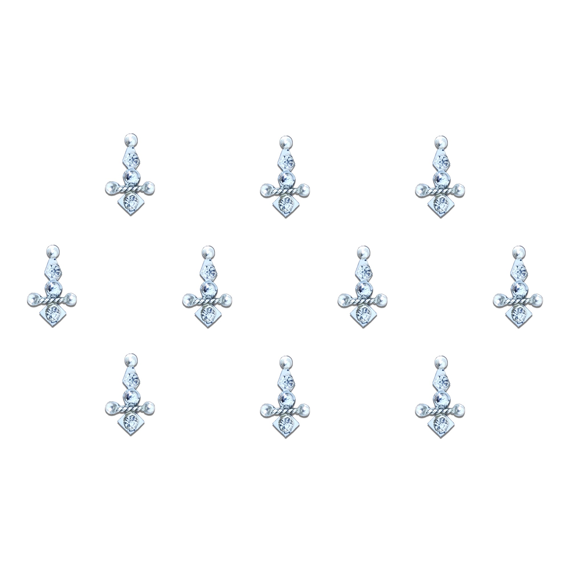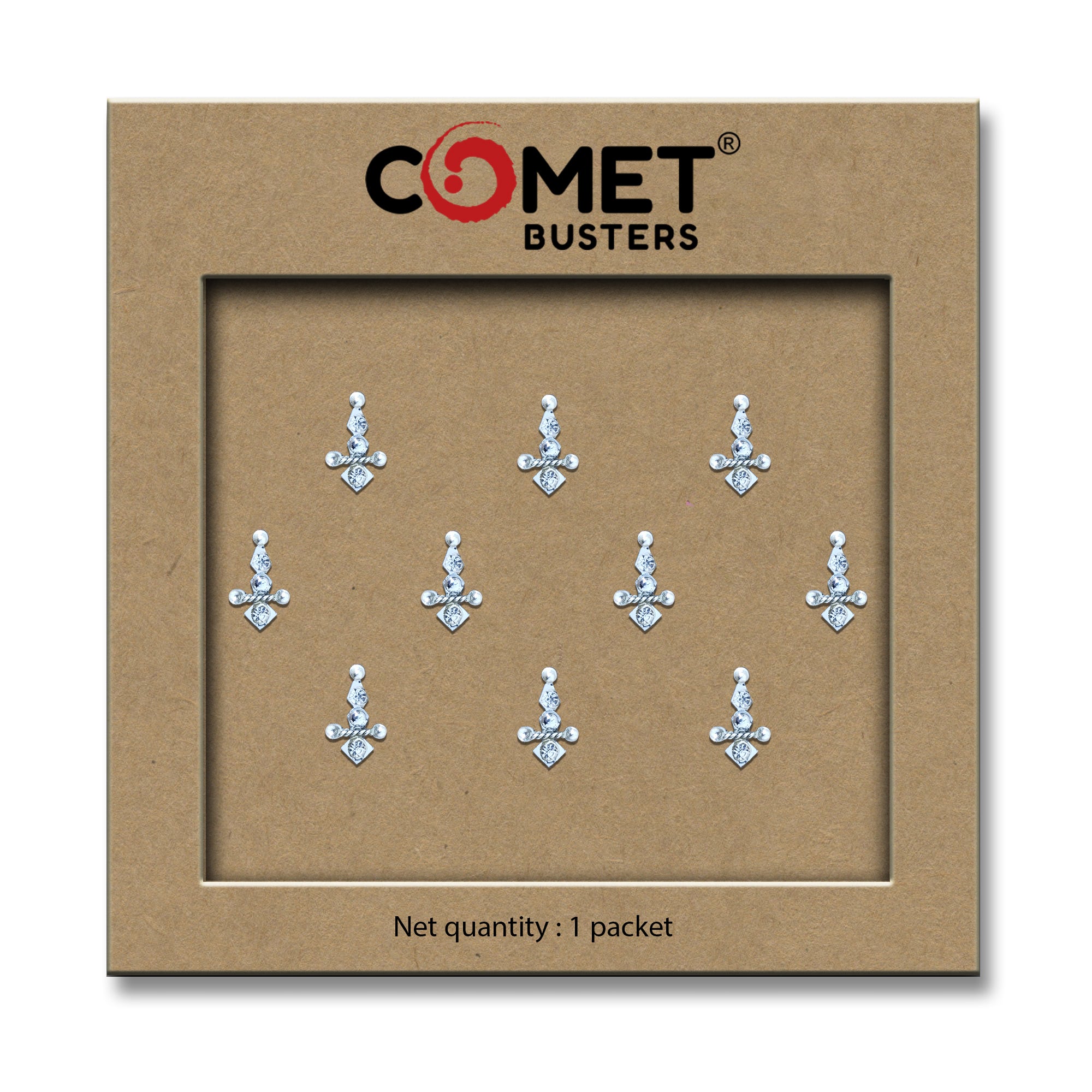 Comet Busters® Silver Artistic Abstract Bindis – Diamond, Shiny Beads – Handcrafted, Reusable & Skin-Friendly Bindis for Partywear Wear (8mm) – Forehead Bindi Stickers for Women & Girls – BIN877
