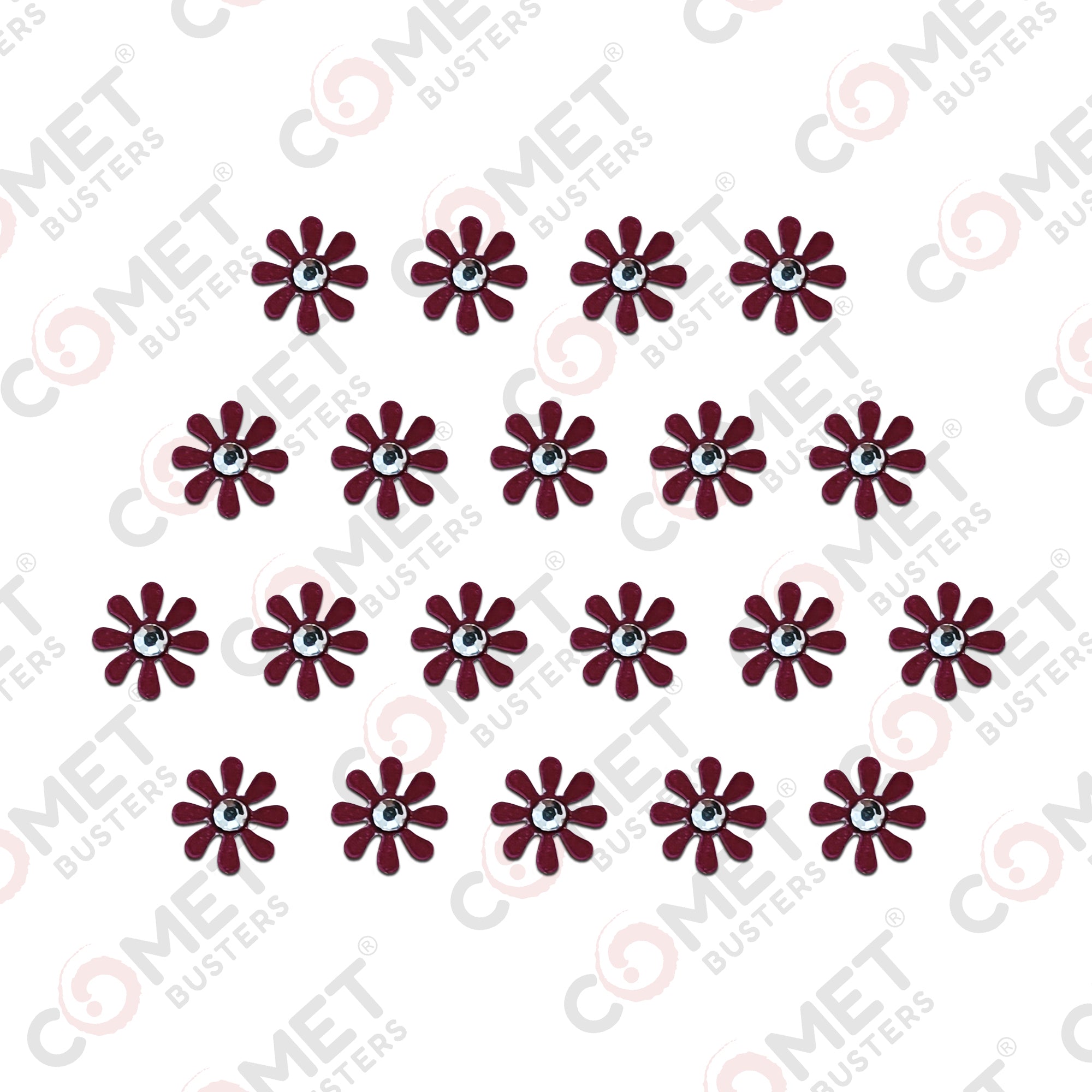 Comet Busters® Maroon Floral – PVC, Diamond – Handcrafted, Reusable & Skin-Friendly Bindis for Casual Wear (8mm) – Forehead Bindi Stickers for Women & Girls – BIN2362