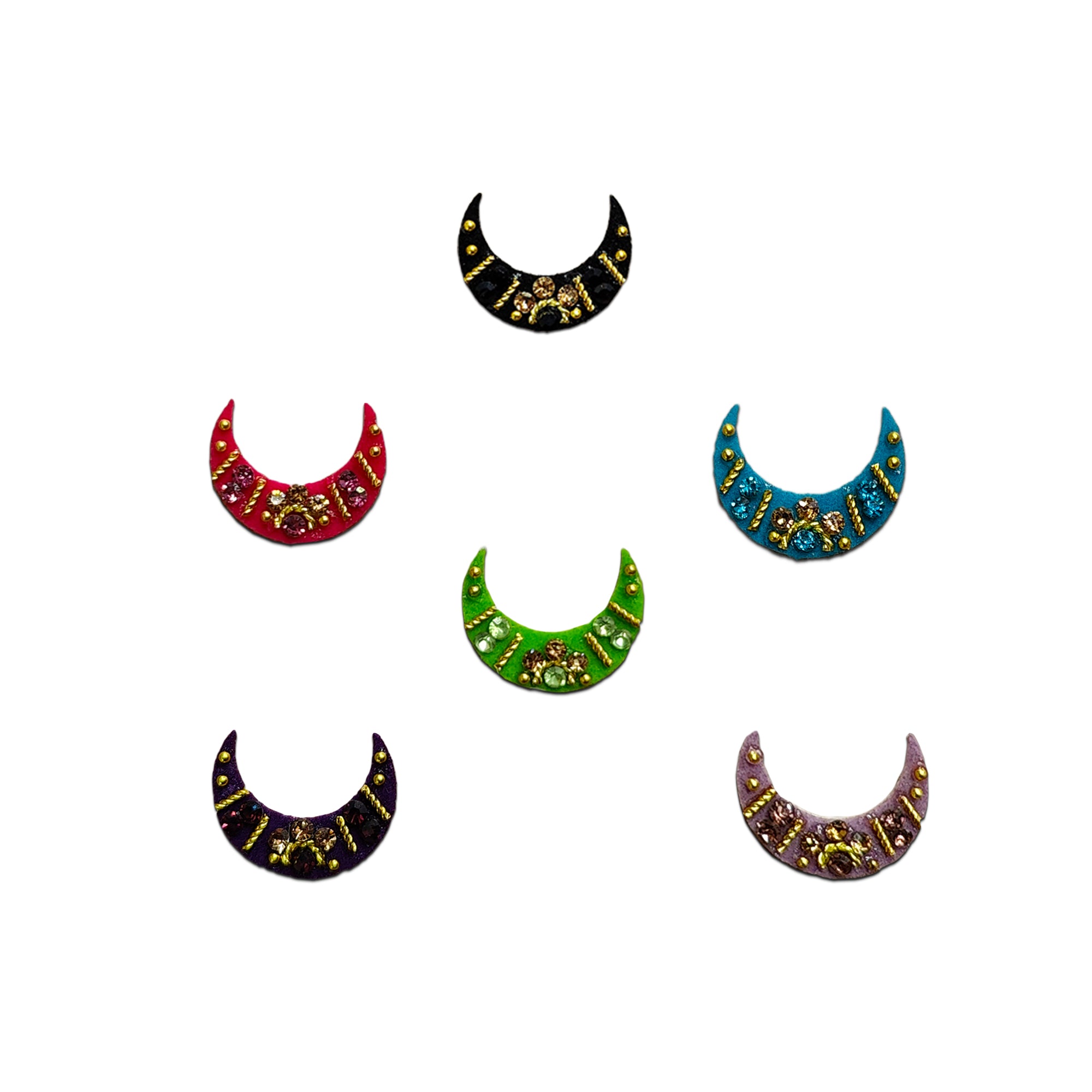 Comet Busters® Multicolor Moon – Velvet, Diamond, Shiny Beads – Handcrafted, Reusable & Skin-Friendly Bindis for Party Wear (10mm) – Forehead Bindi Stickers for Women & Girls – BIN2206