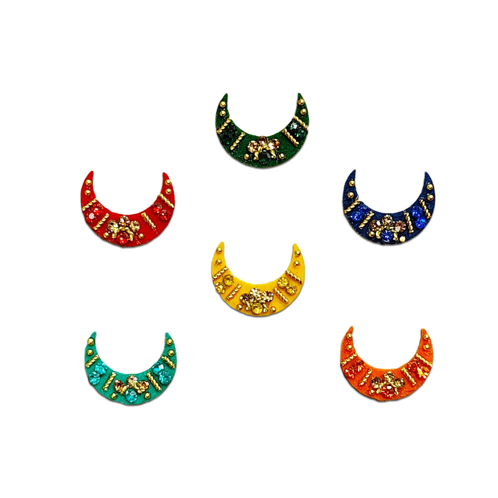 Comet Busters® Multicolor Moon – Velvet, Diamond, Shiny Beads – Handcrafted, Reusable & Skin-Friendly Bindis for Party Wear (10mm) – Forehead Bindi Stickers for Women & Girls – BIN2207