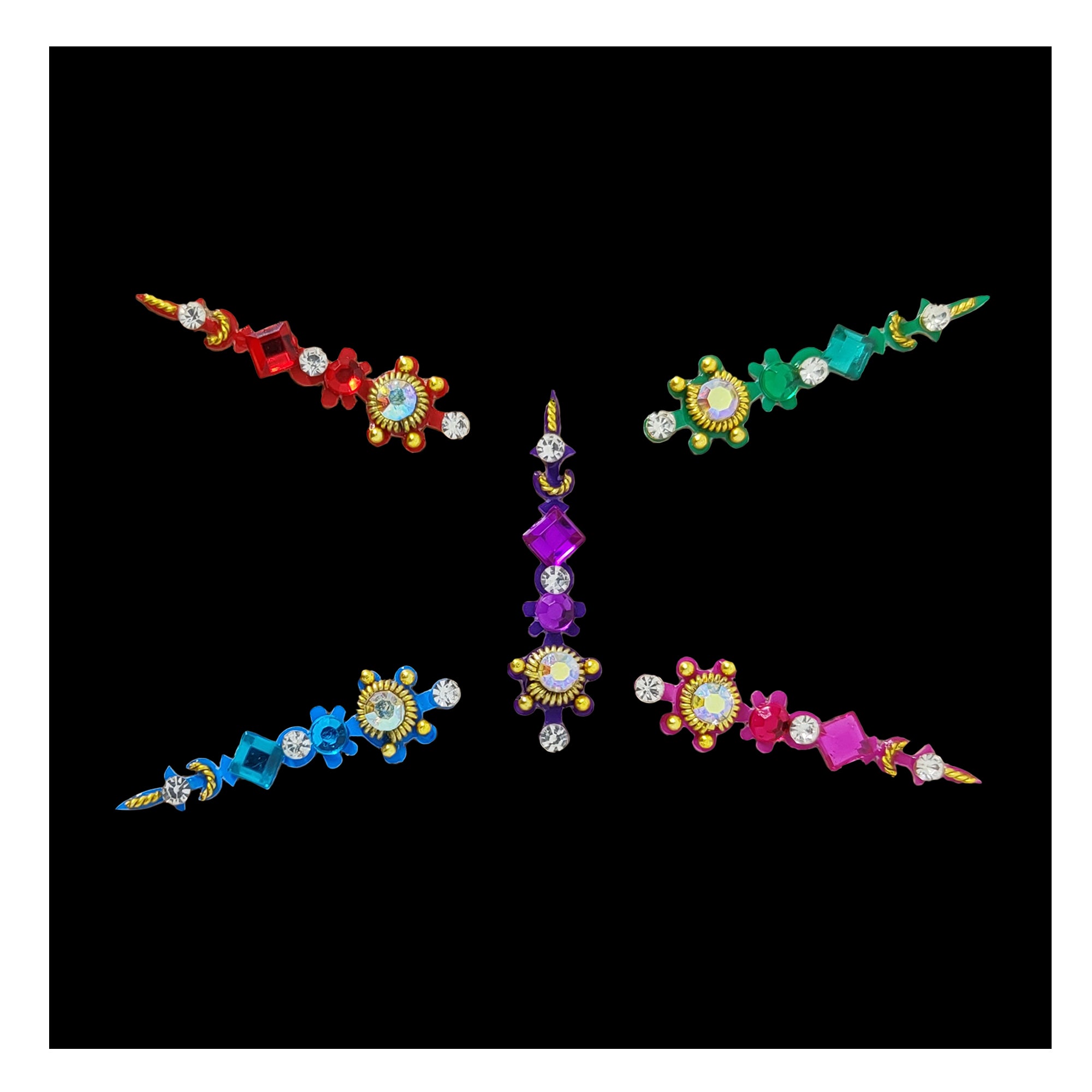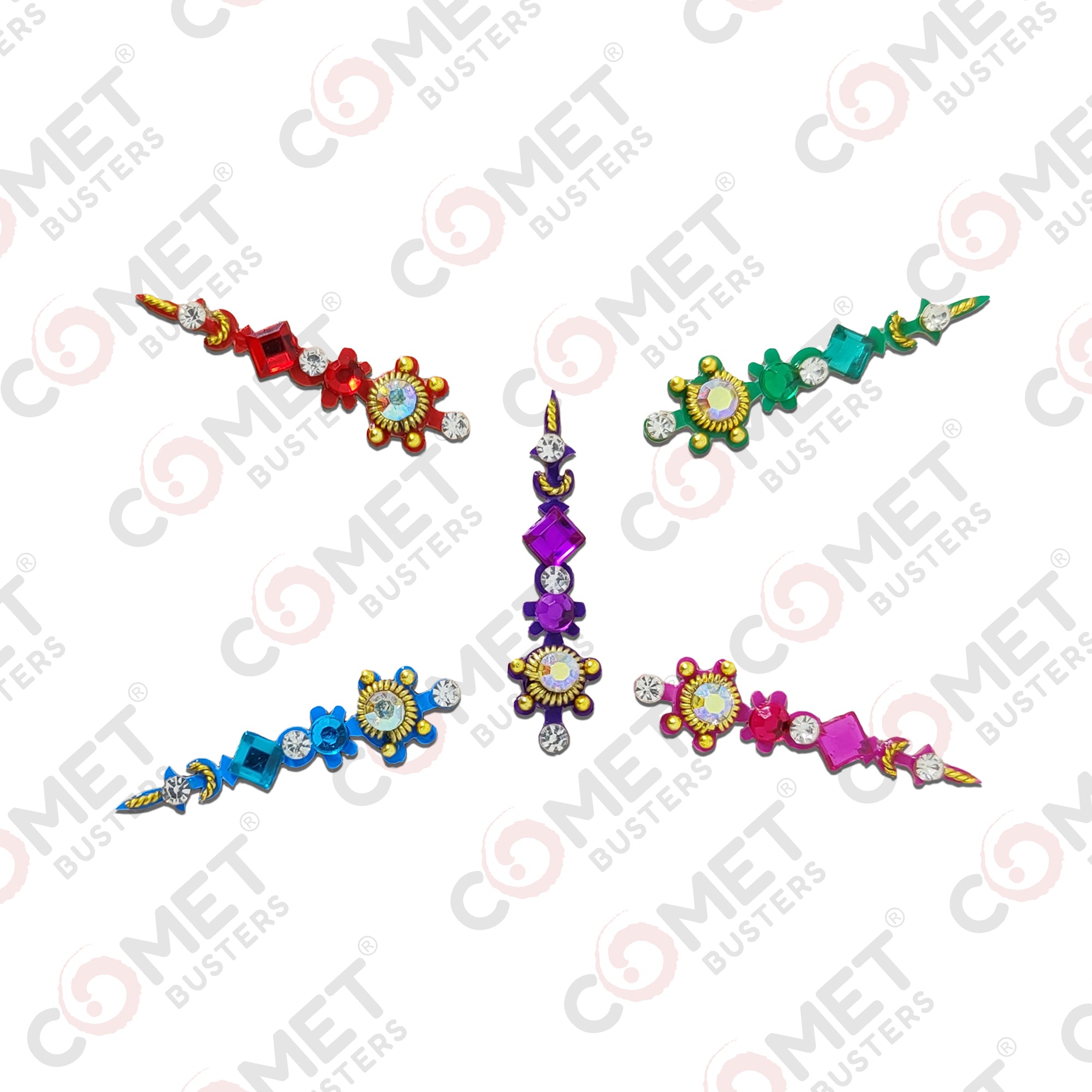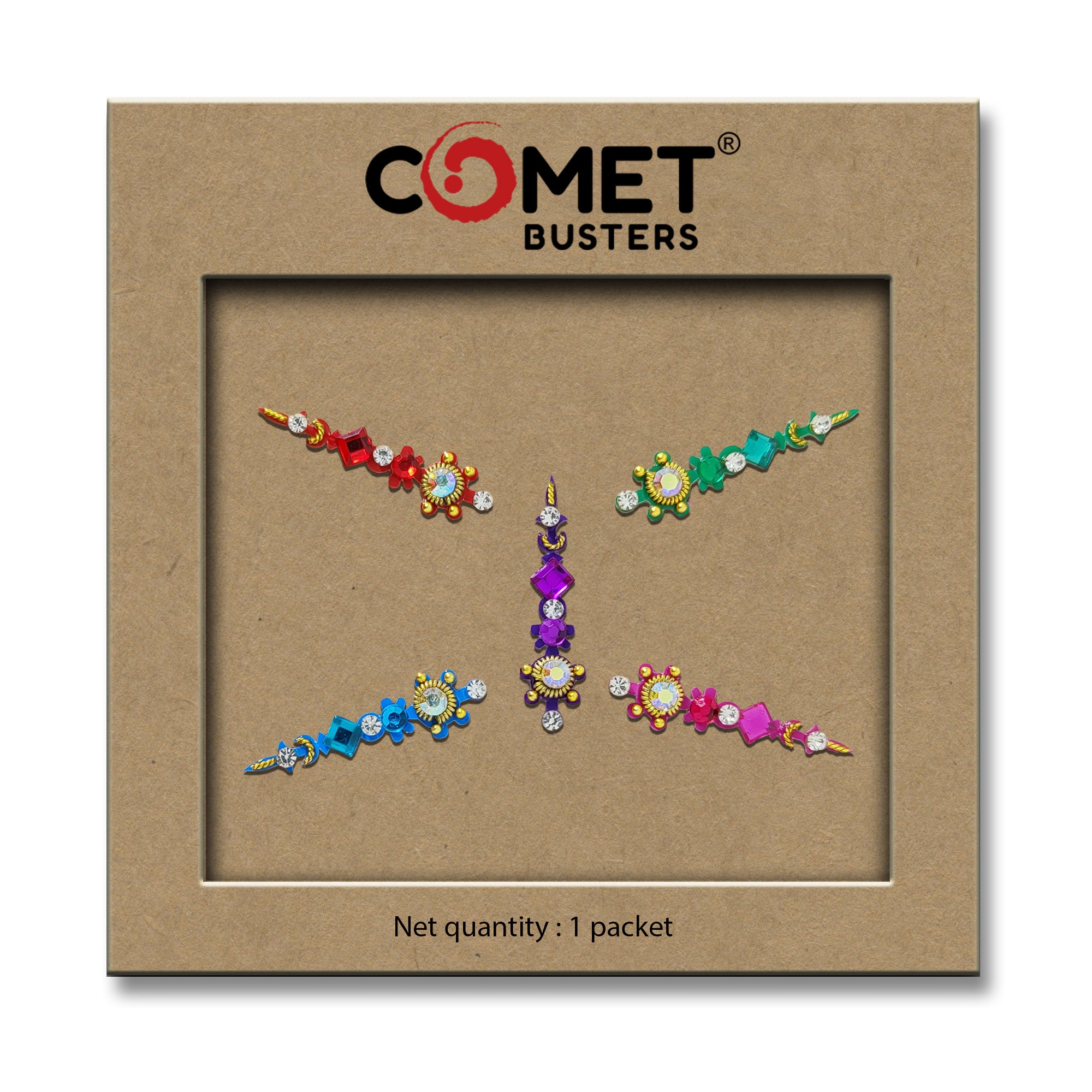 Comet Busters® Multicolor Artistic Abstract Bindis – Diamond, Shiny Beads – Handcrafted, Reusable & Skin-Friendly Bindis for Casual Wear (25mm) – Forehead Bindi Stickers for Women & Girls – BIN008