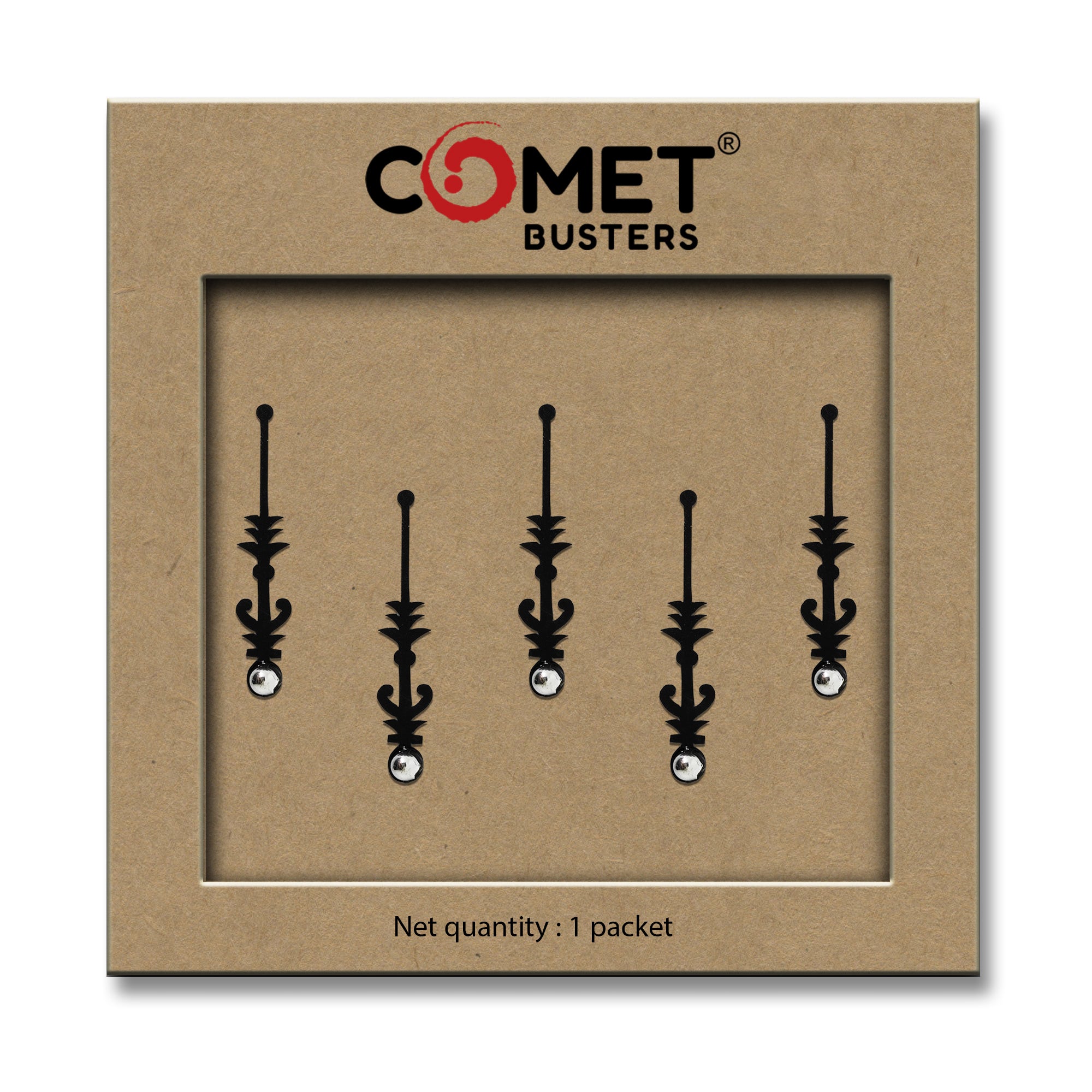 Comet Busters® Black Artistic Abstract Bindis – Shiny Beads, PVC – Handcrafted, Reusable & Skin-Friendly Bindis for Partywear Wear (25mm) – Forehead Bindi Stickers for Women & Girls – BIN717