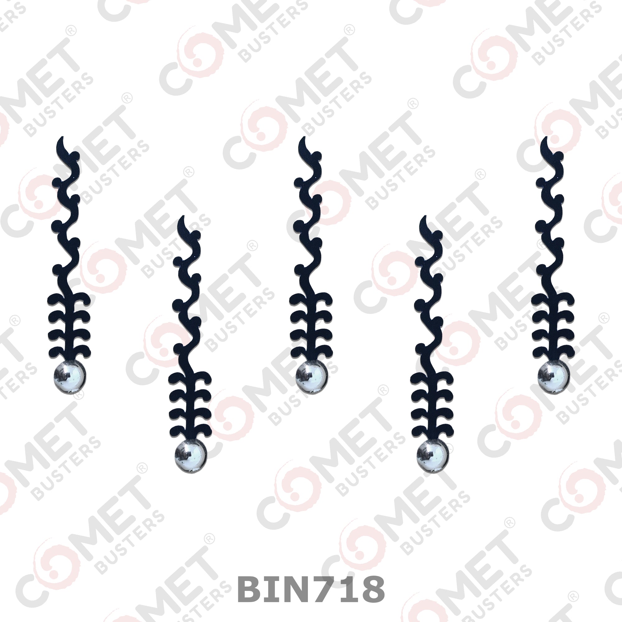 Comet Busters® Black Artistic Abstract Bindis – Shiny Beads, PVC – Handcrafted, Reusable & Skin-Friendly Bindis for Partywear Wear (25mm) – Forehead Bindi Stickers for Women & Girls – BIN718