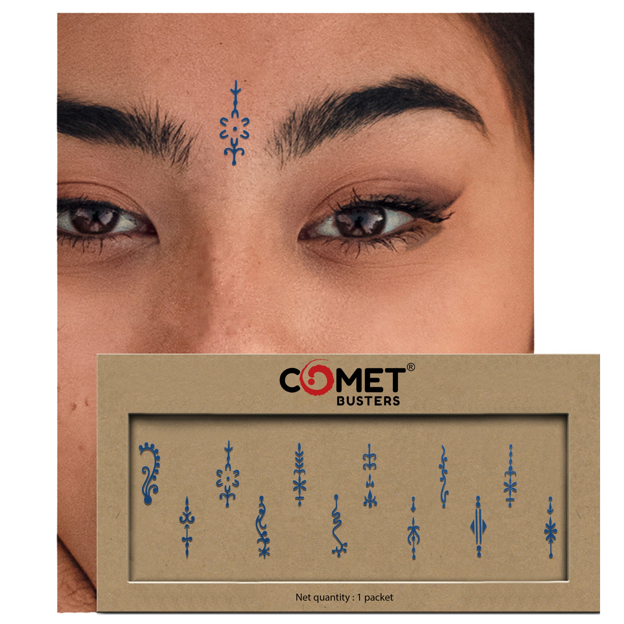 Comet Busters® Blue Designer Classic Bindis – Handcrafted, Reusable, Skin-Safe Indian Forehead Stickers for Women