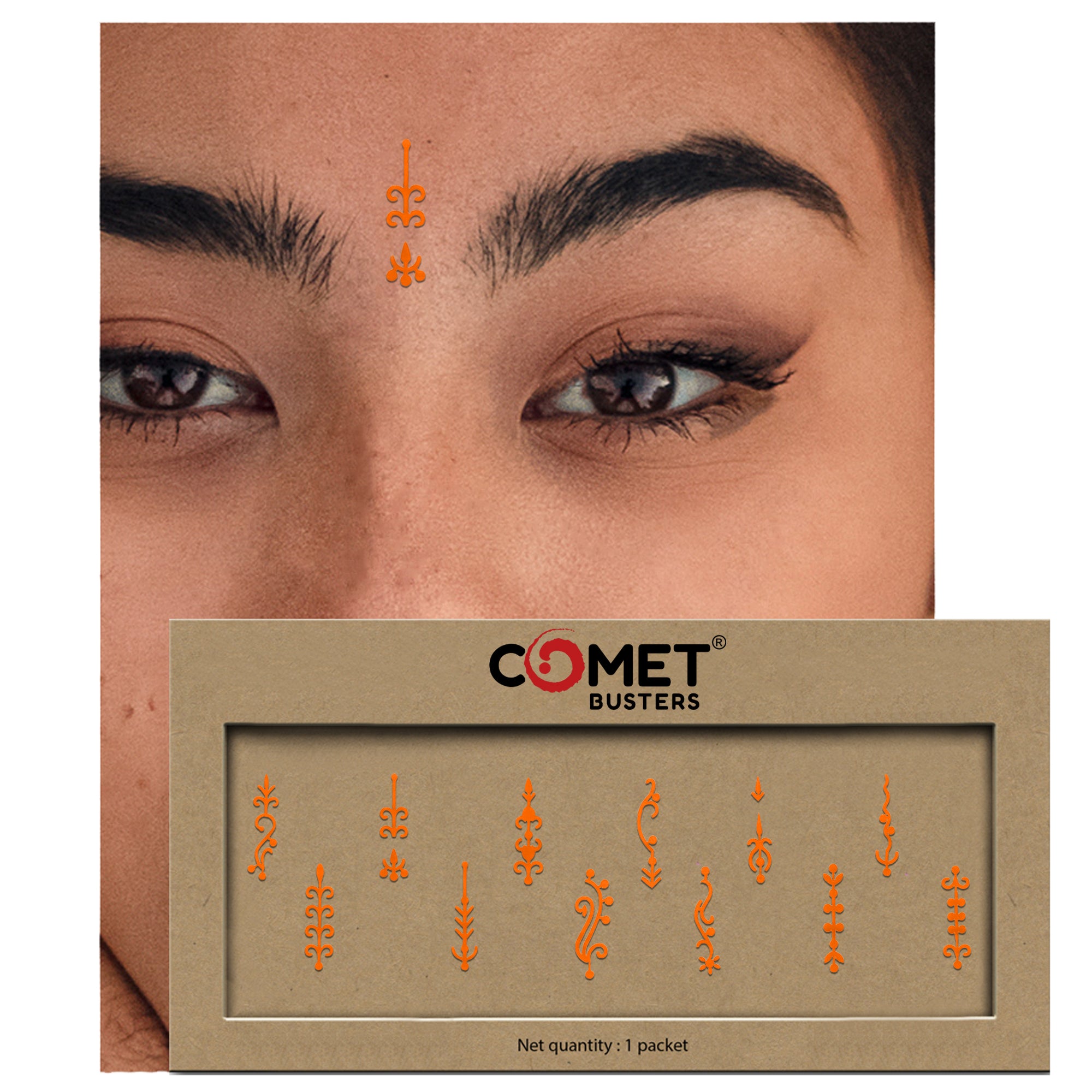Comet Busters® Orange Designer Classic Bindis – Handcrafted, Reusable, Skin-Safe Indian Forehead Stickers for Women