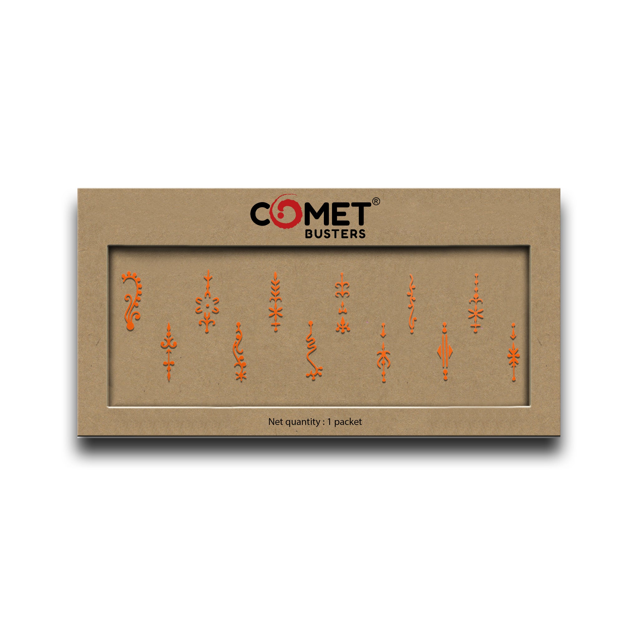 Comet Busters® Orange Designer Classic Bindis – Handcrafted, Reusable, Skin-Safe Indian Forehead Stickers for Women