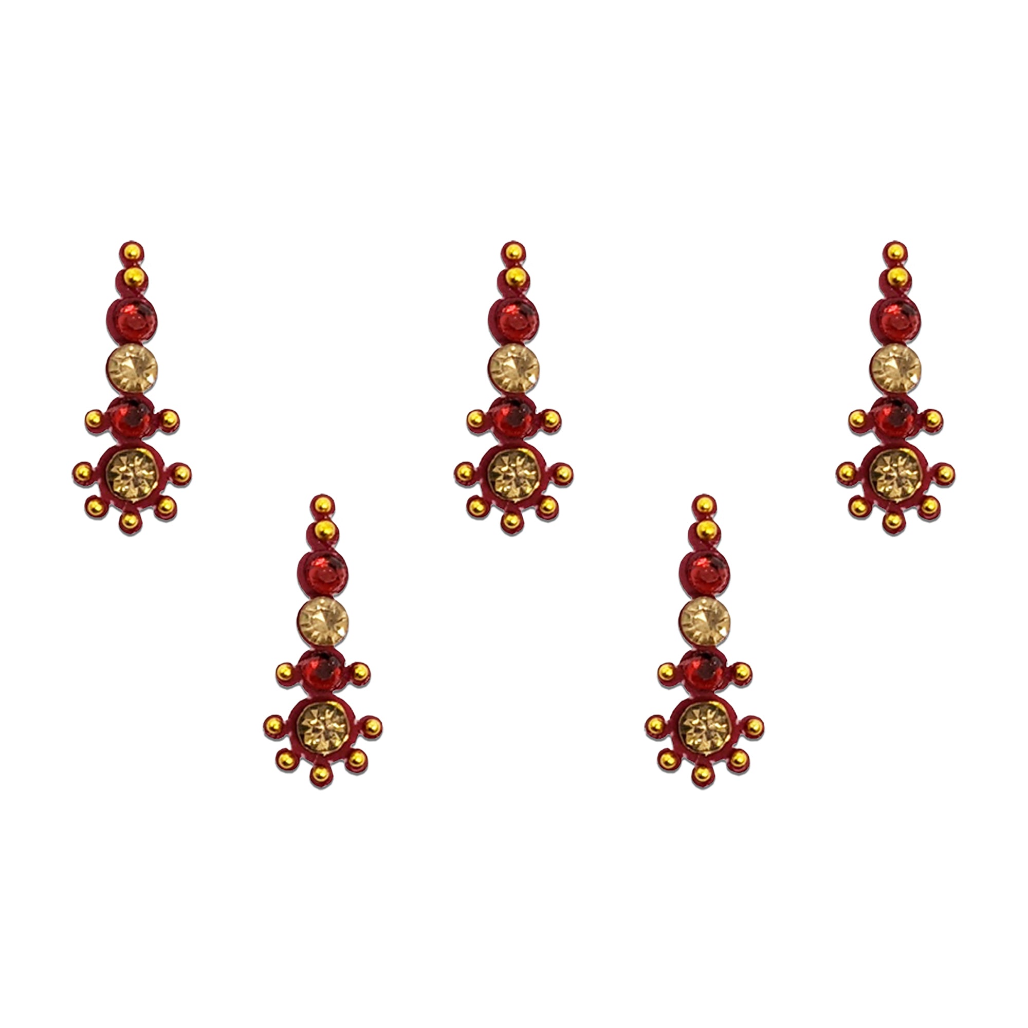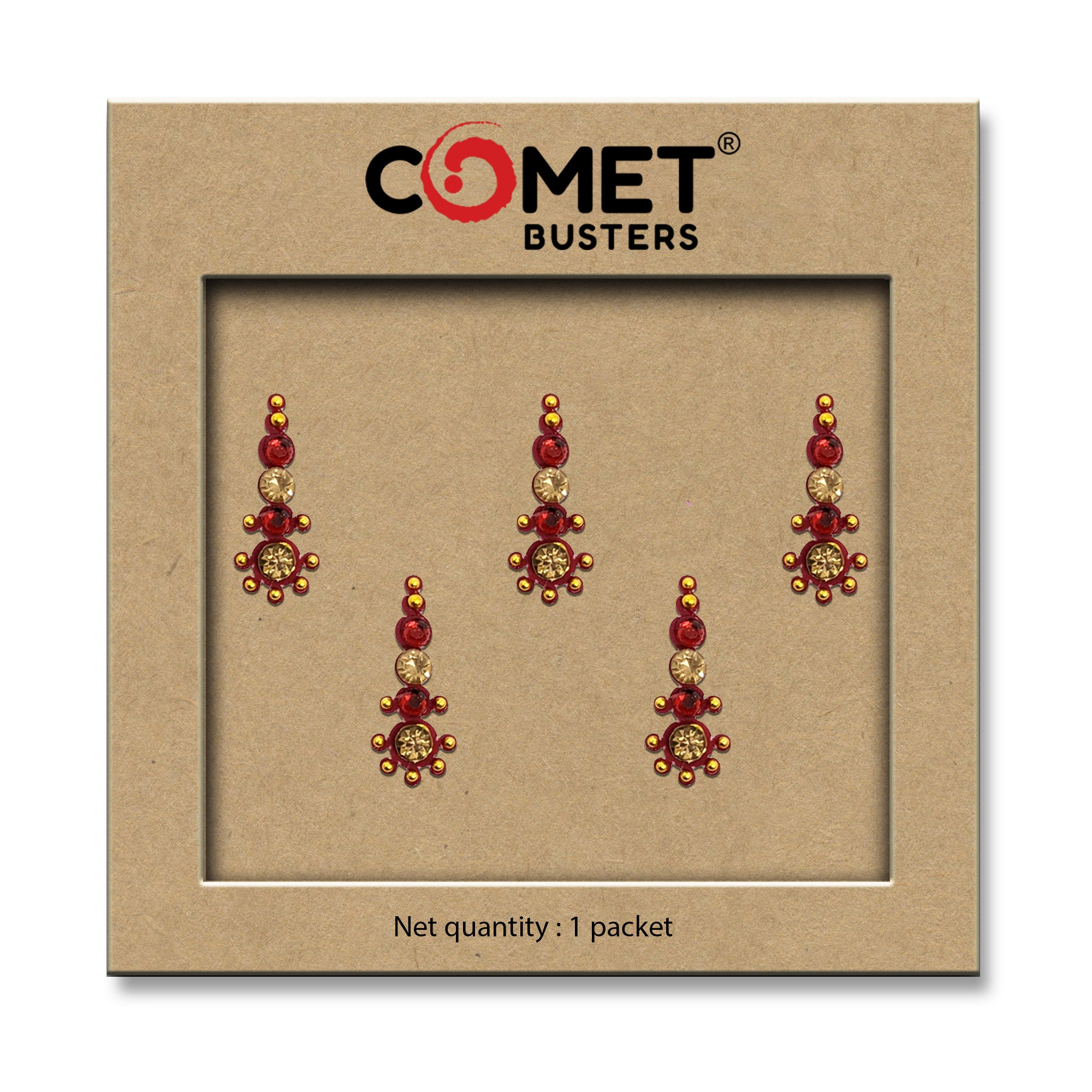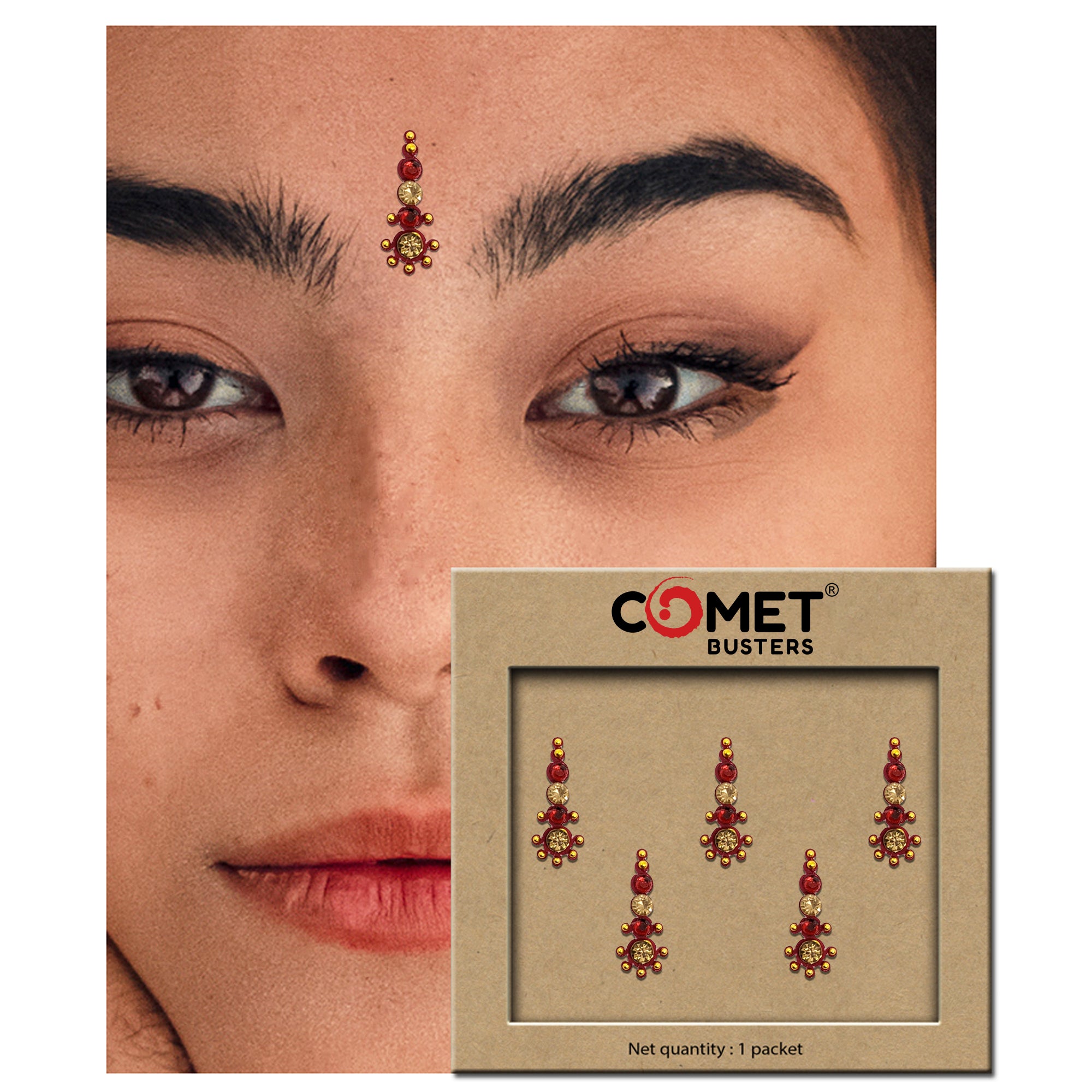 Comet Busters® Red, Gold, Multicolor Artistic Abstract Bindis – Shiny Beads, Diamond – Handcrafted, Reusable & Skin-Friendly Bindis for Party Wear (15mm) – Forehead Bindi Stickers for Women & Girls – BIN1552