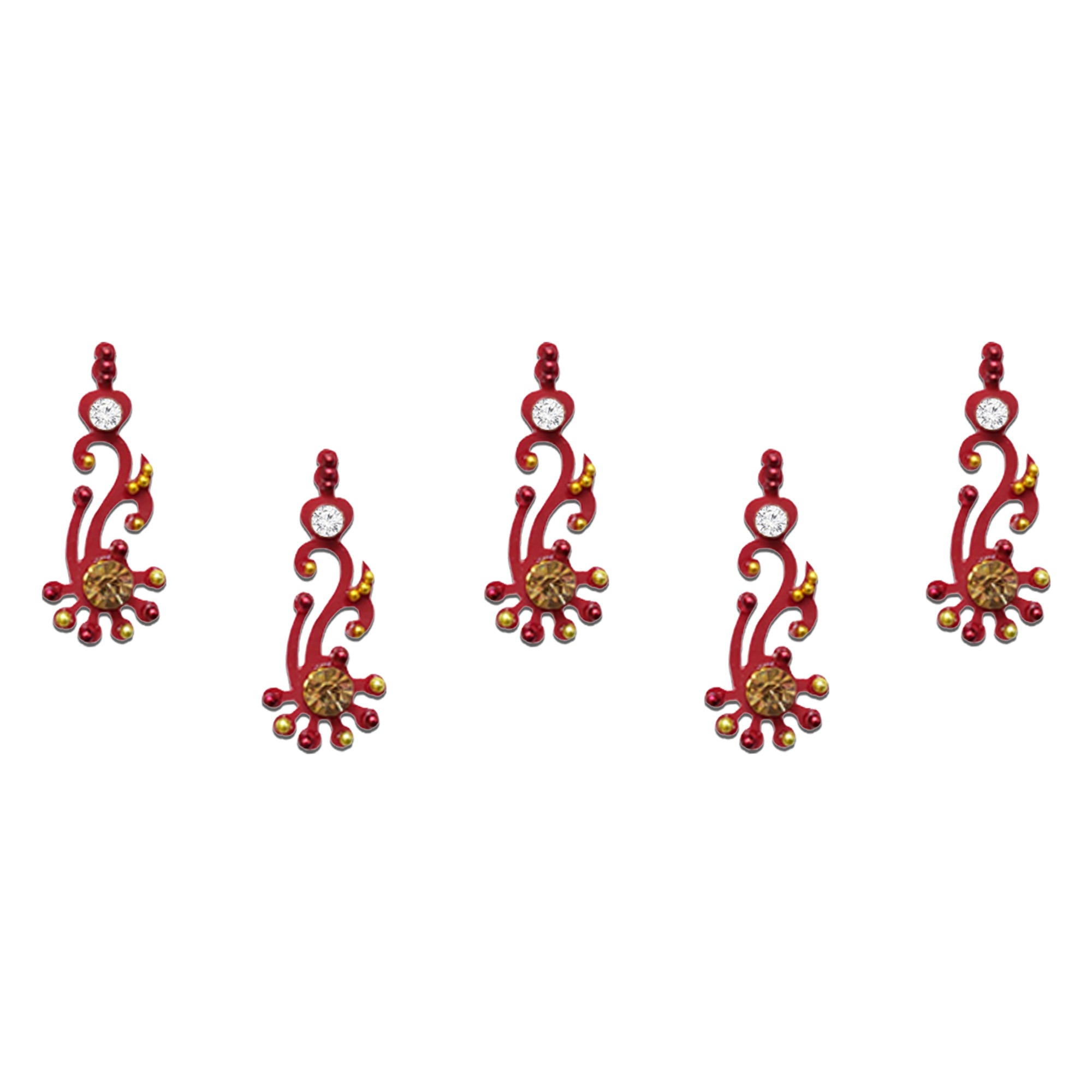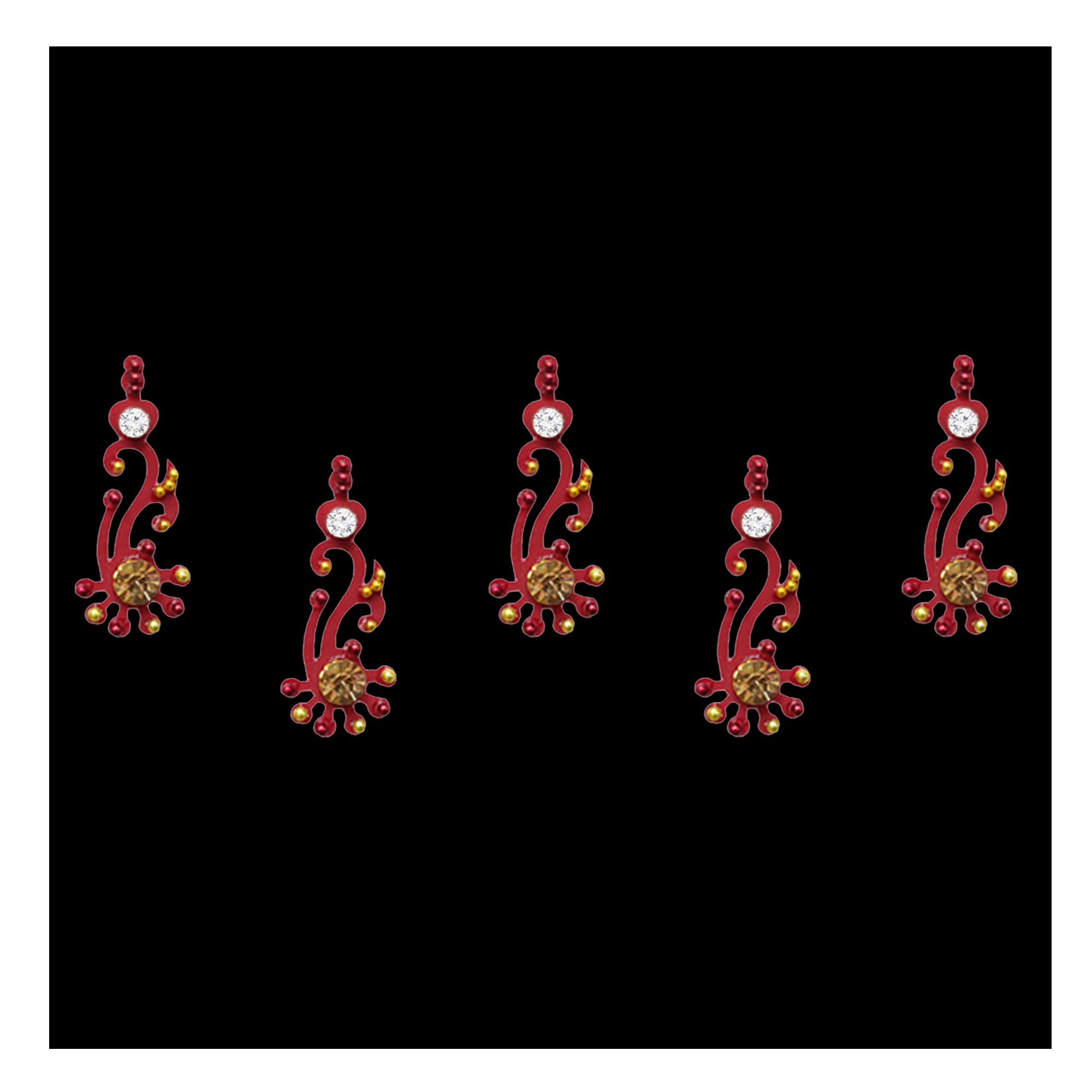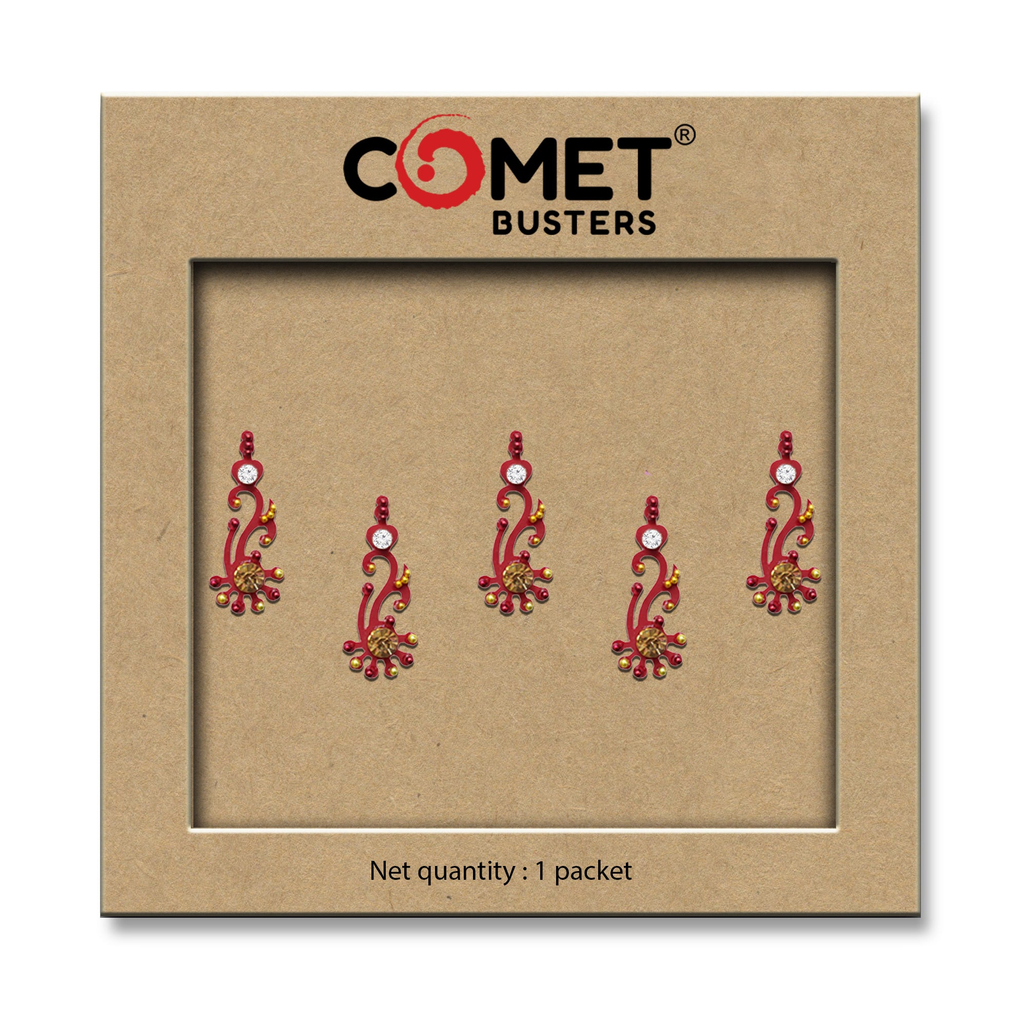 Comet Busters® Maroon Artistic Abstract Bindis – Diamond, Shiny Beads, PVC – Handcrafted, Reusable & Skin-Friendly Bindis for Party Wear (20mm) – Forehead Bindi Stickers for Women & Girls – BIN1168