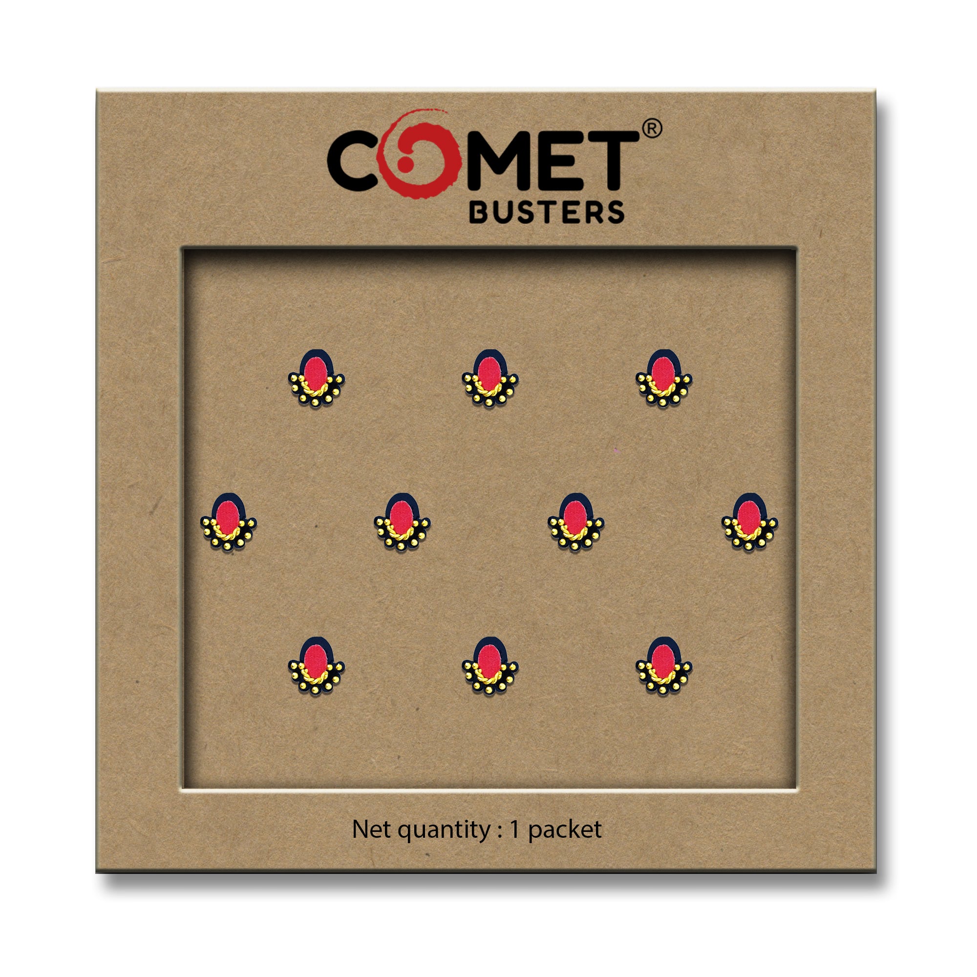 Comet Busters® Red, Gold, Multicolor Oval – Shiny Beads – Handcrafted, Reusable & Skin-Friendly Bindis for Partywear Wear (7mm) – Forehead Bindi Stickers for Women & Girls – BIN892