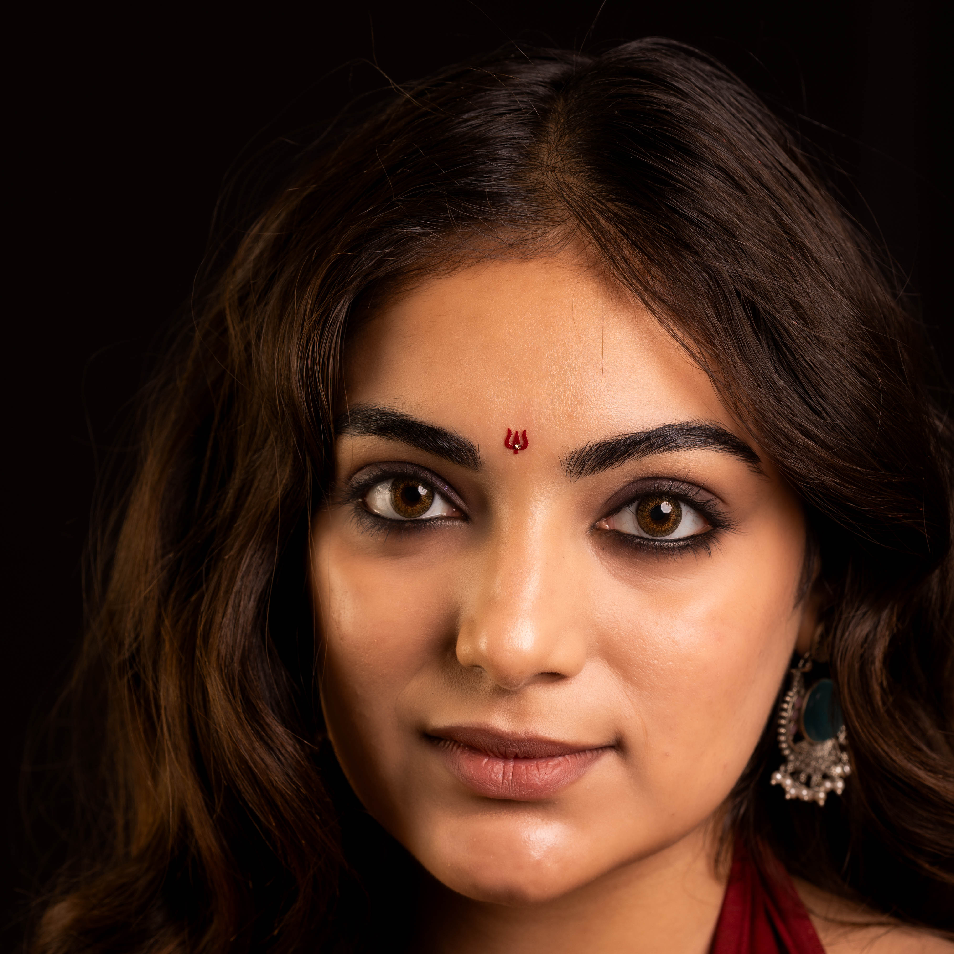• To apply, gently remove the bindi from its backing and place it between the eyebrows.