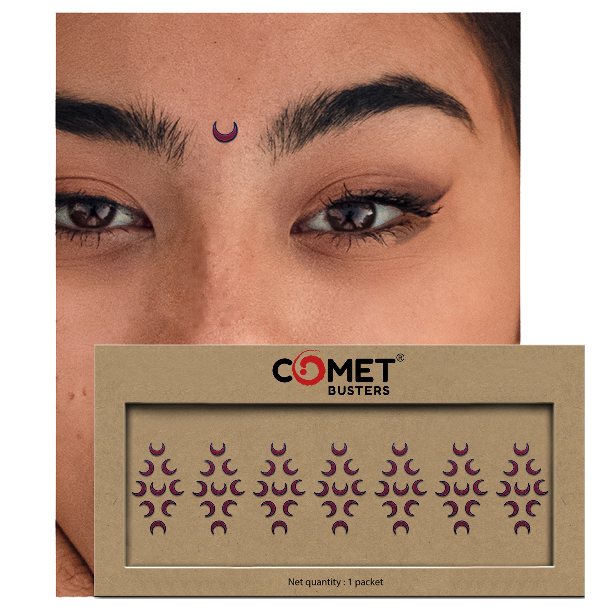 Comet Busters® Maroon Moon – PVC – Handcrafted, Reusable & Skin-Friendly Bindis for Casual Wear (5mm) – Forehead Bindi Stickers for Women & Girls – BIN214
