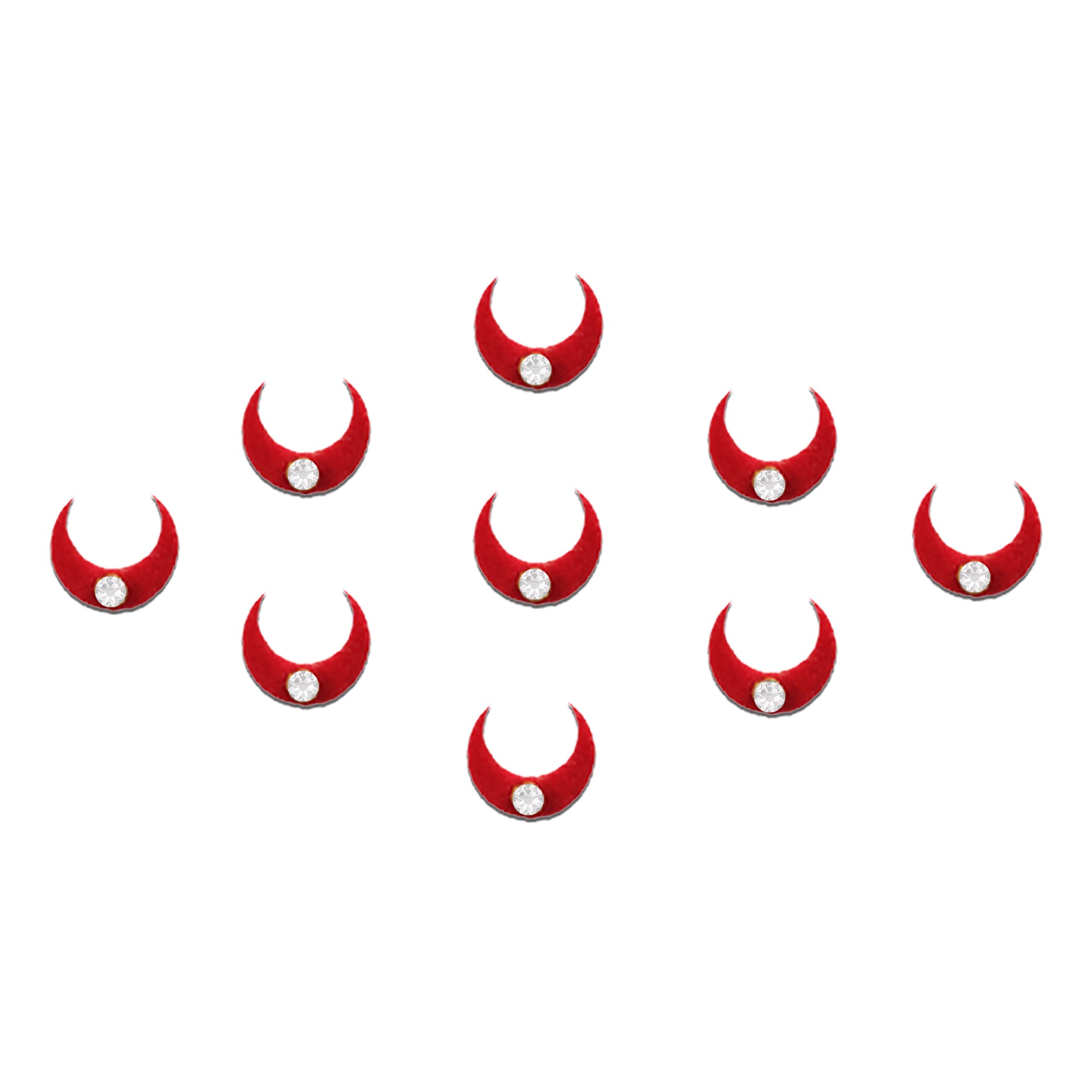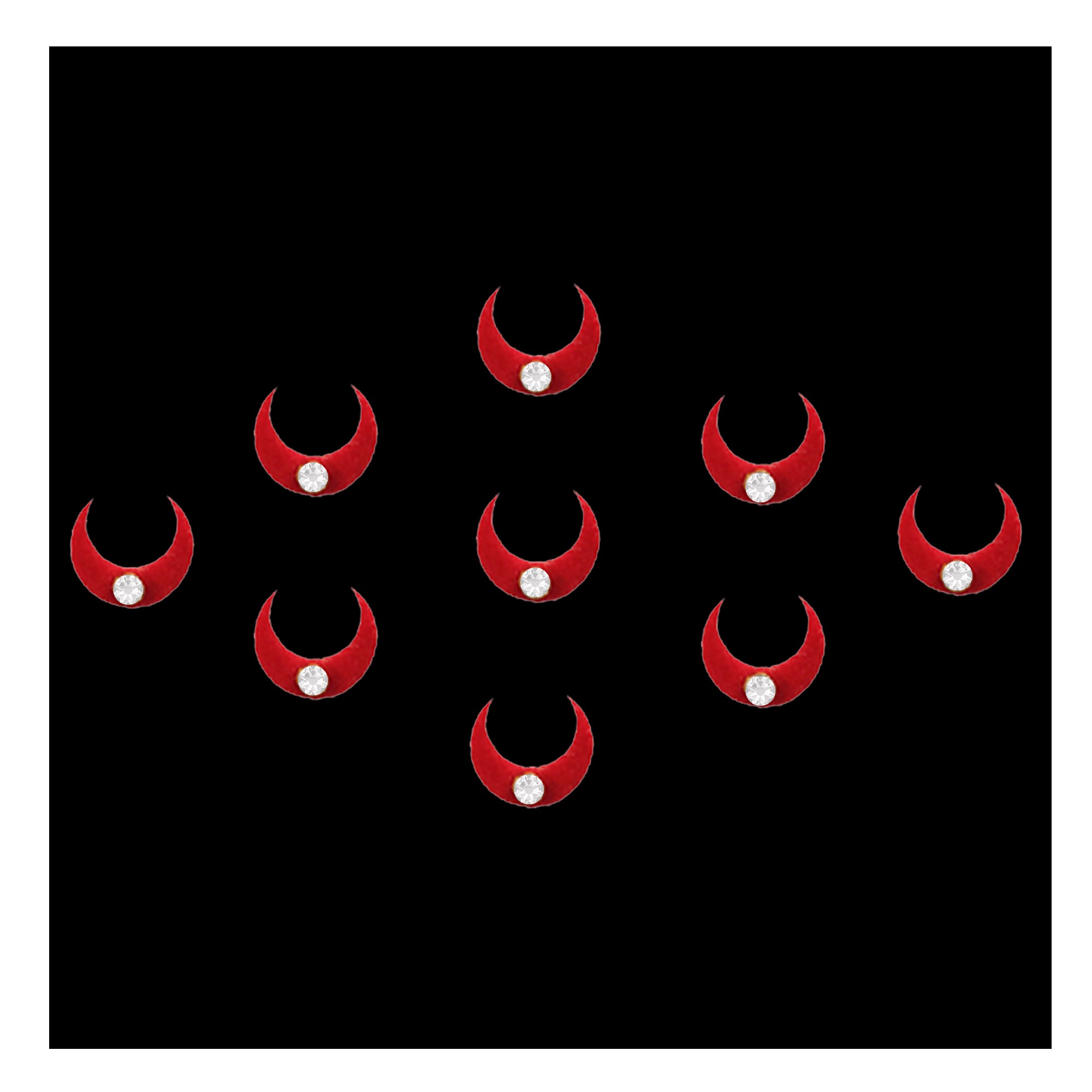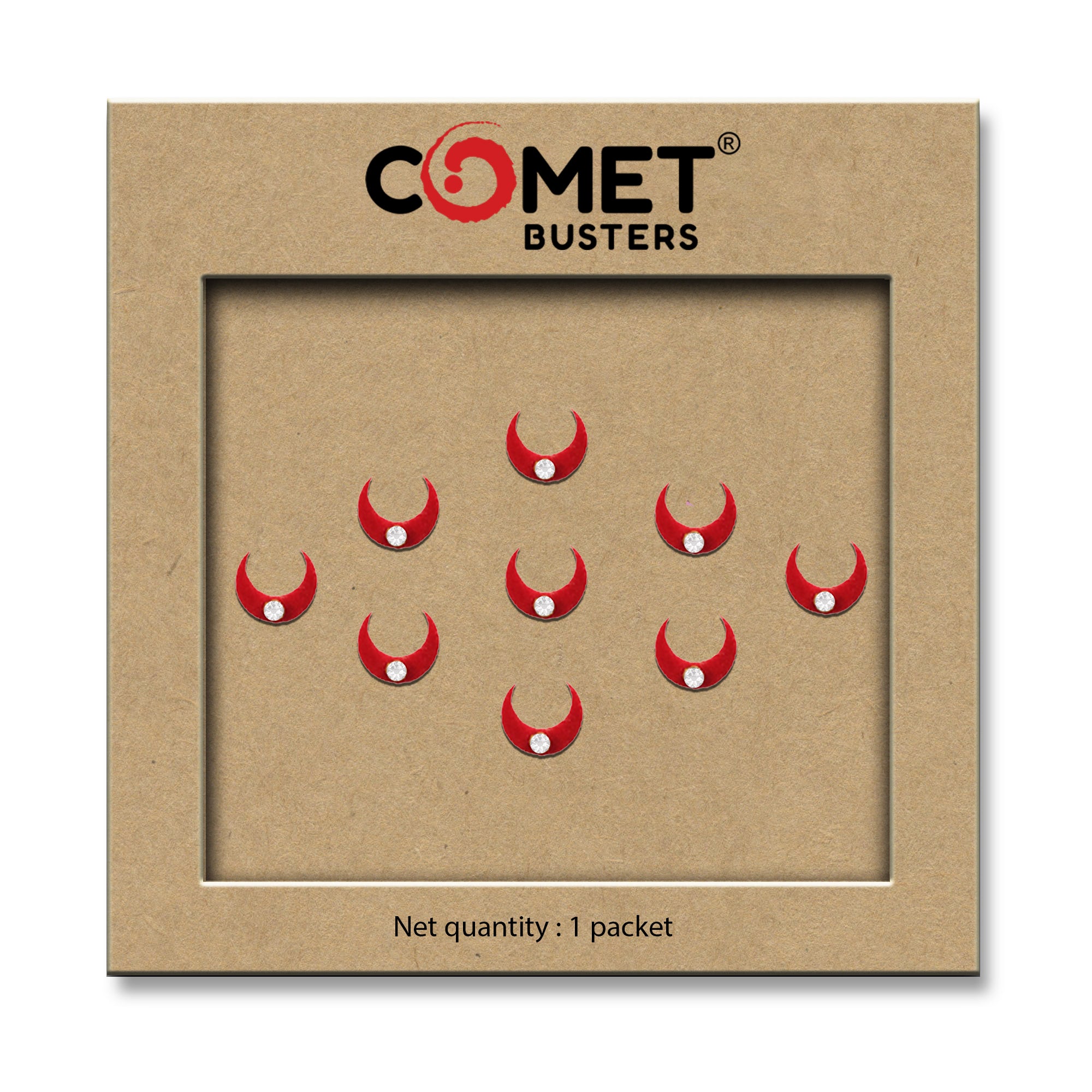 Comet Busters® Red Moon – Diamond, Velvet – Handcrafted, Reusable & Skin-Friendly Bindis for Casual Wear (9mm) – Forehead Bindi Stickers for Women & Girls – BIN1031