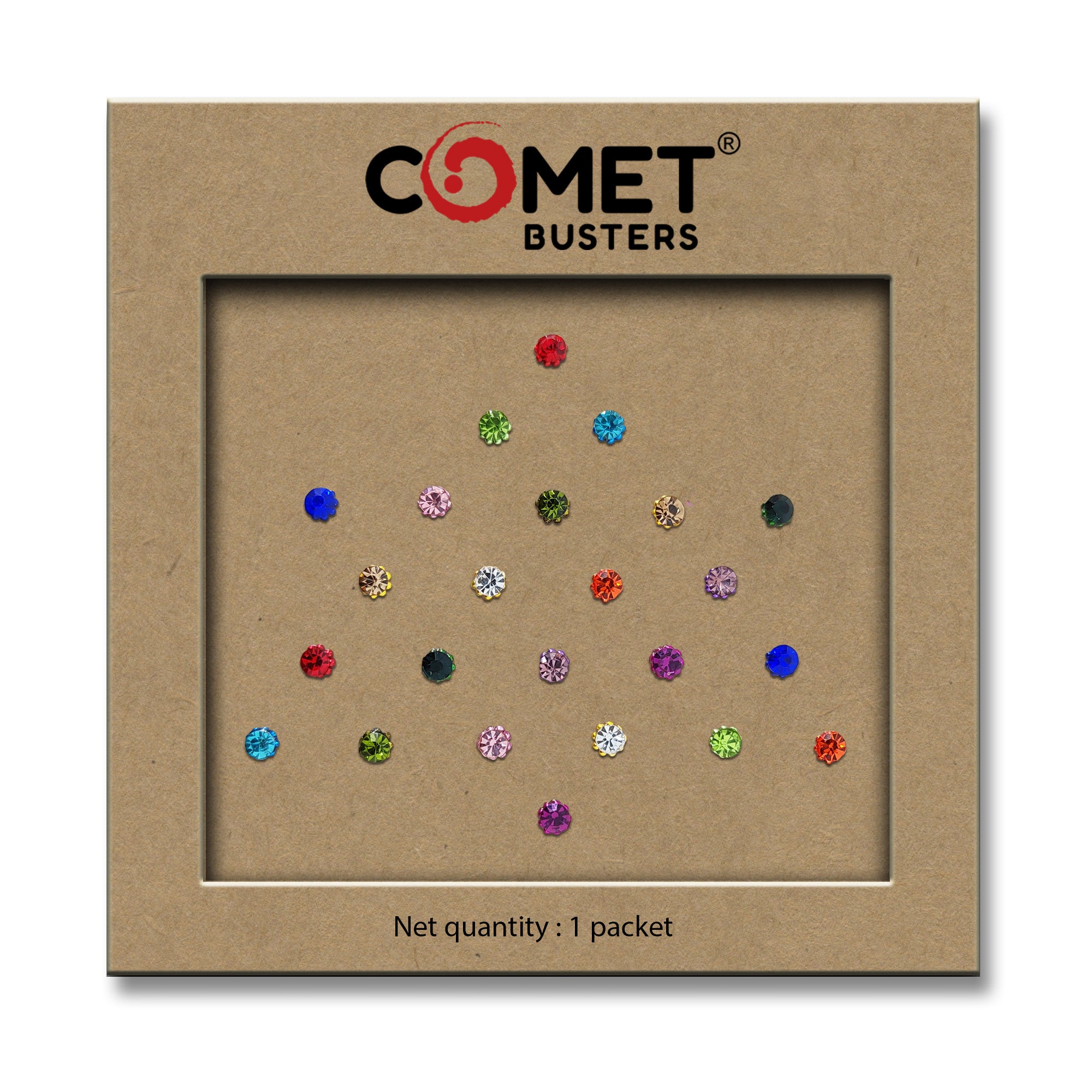 Comet Busters® Multicolor Diamond Dot – Diamond – Handcrafted, Reusable & Skin-Friendly Bindis for Casual Wear (3mm) – Forehead Bindi Stickers for Women & Girls – BIN006