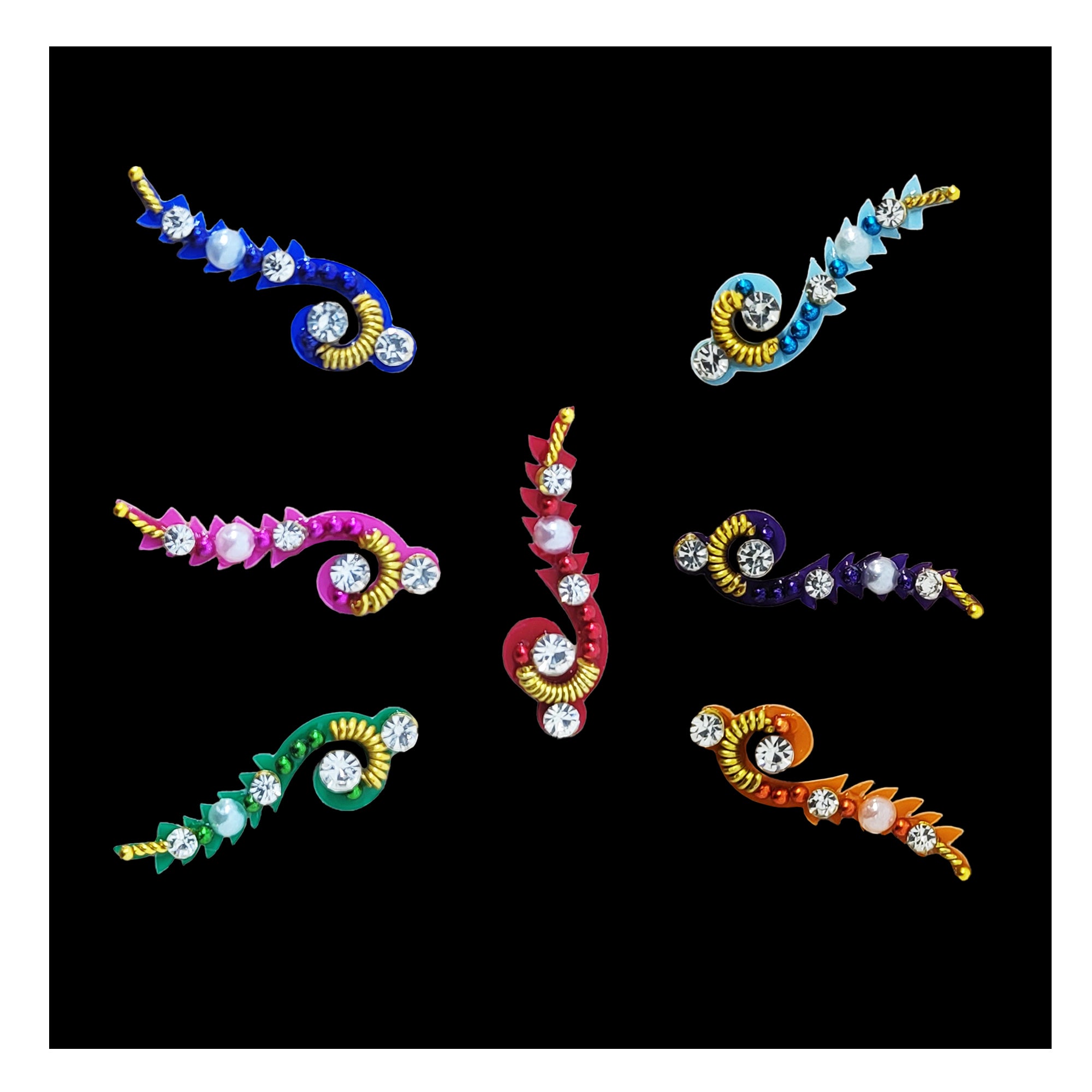 • Multicolor Bindis: Vibrant options for a lively look.