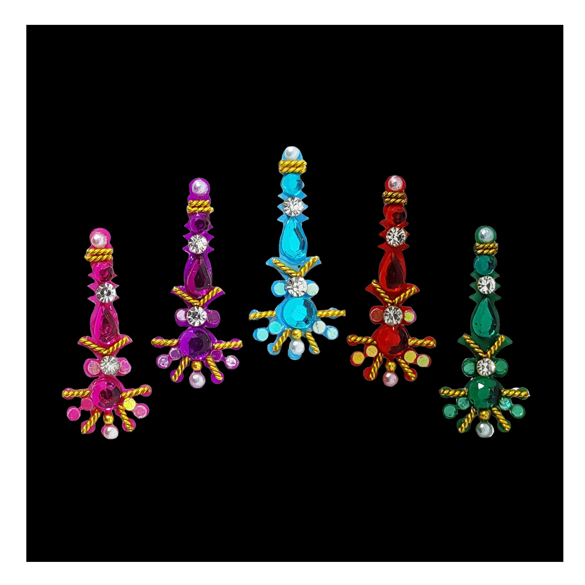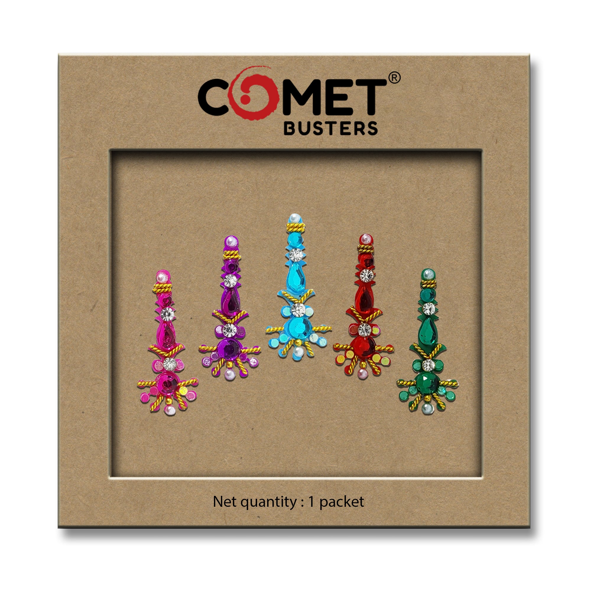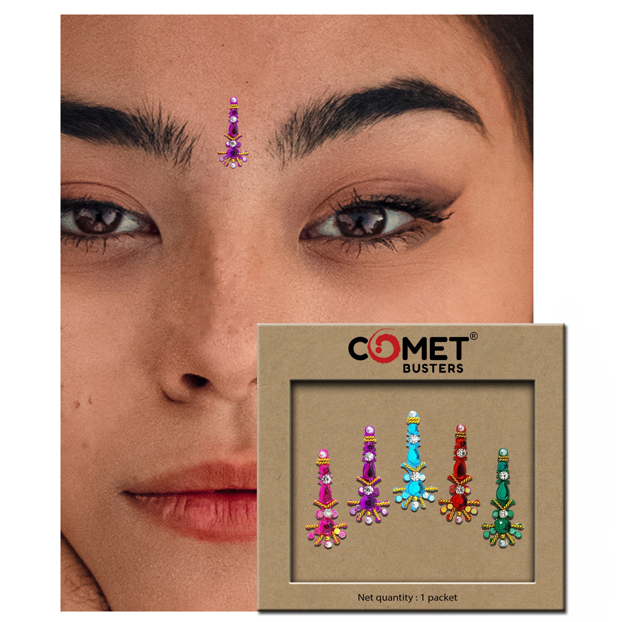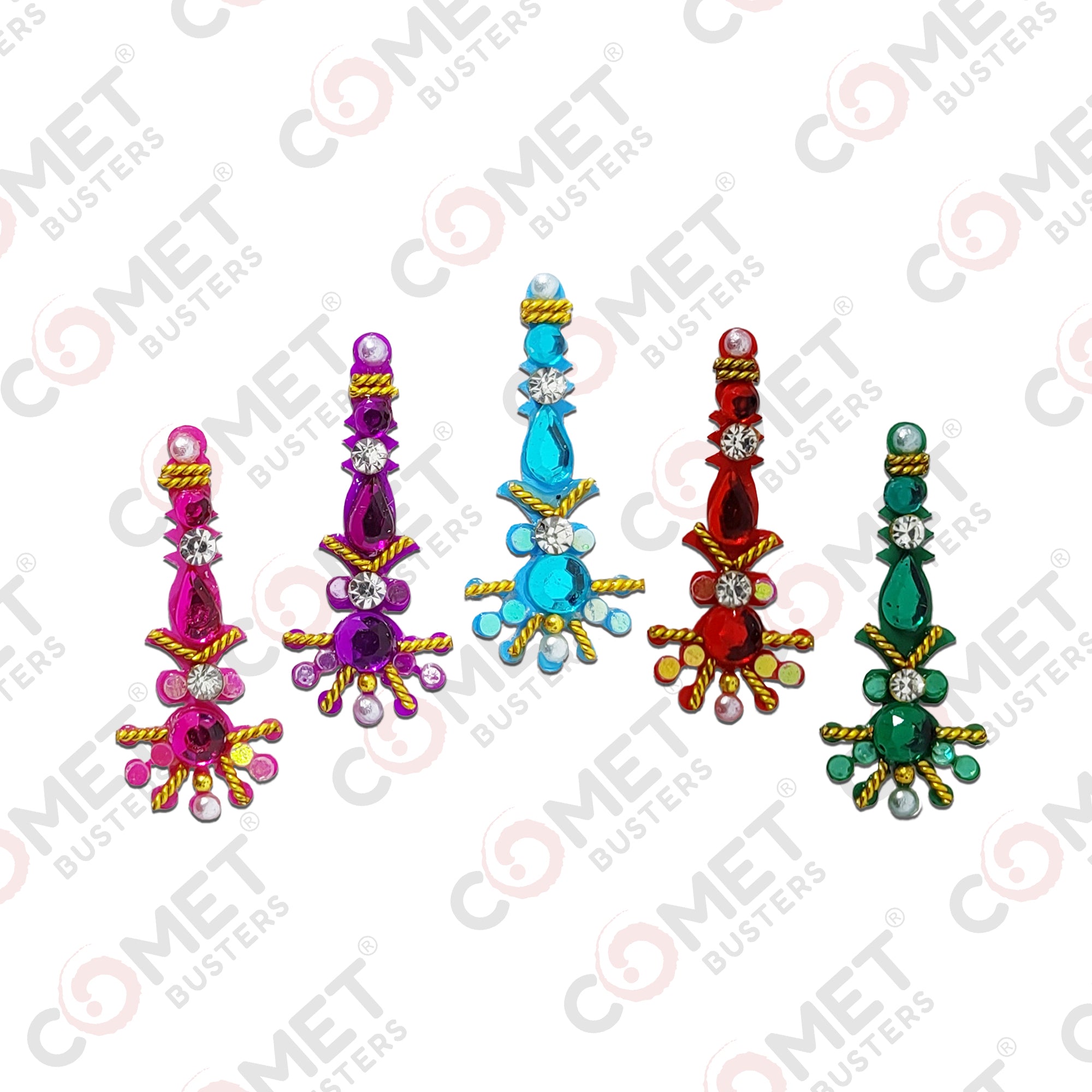 Comet Busters® Multicolor Artistic Abstract Bindis – Crystal, Diamond, Shiny Beads – Handcrafted, Reusable & Skin-Friendly Bindis for Bridal Wear (20mm) – Forehead Bindi Stickers for Women & Girls – BIN158