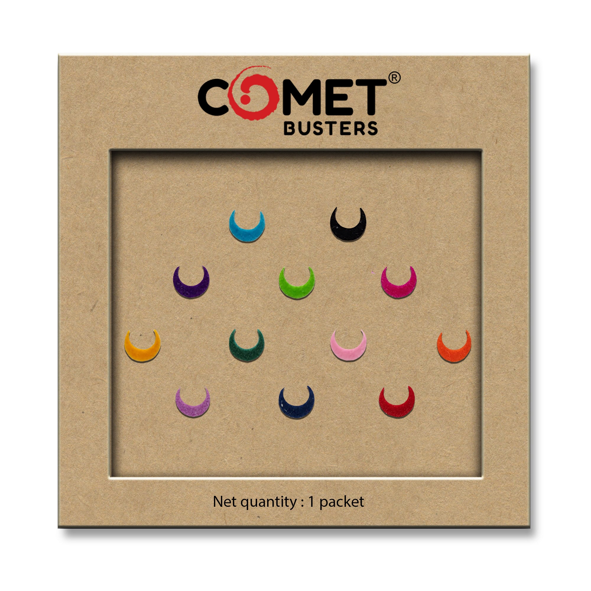 Comet Busters® Multicolor Moon – Velvet – Handcrafted, Reusable & Skin-Friendly Bindis for Casual Wear (7mm) – Forehead Bindi Stickers for Women & Girls – BIN1065