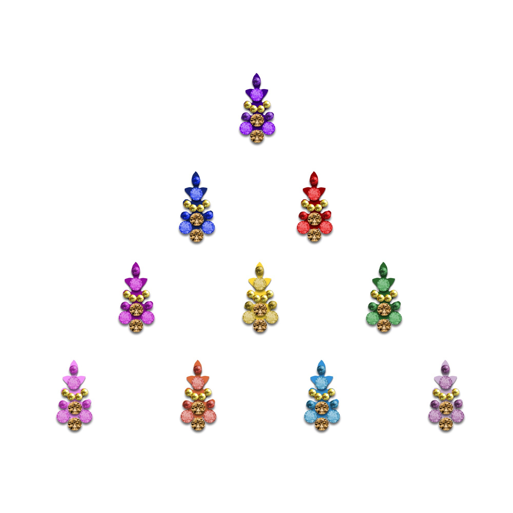 Comet Busters® Multicolor Artistic Abstract Bindis – PVC, Diamond, Shiny Beads – Handcrafted, Reusable & Skin-Friendly Bindis for Party Wear (8mm) – Forehead Bindi Stickers for Women & Girls – BIN2191