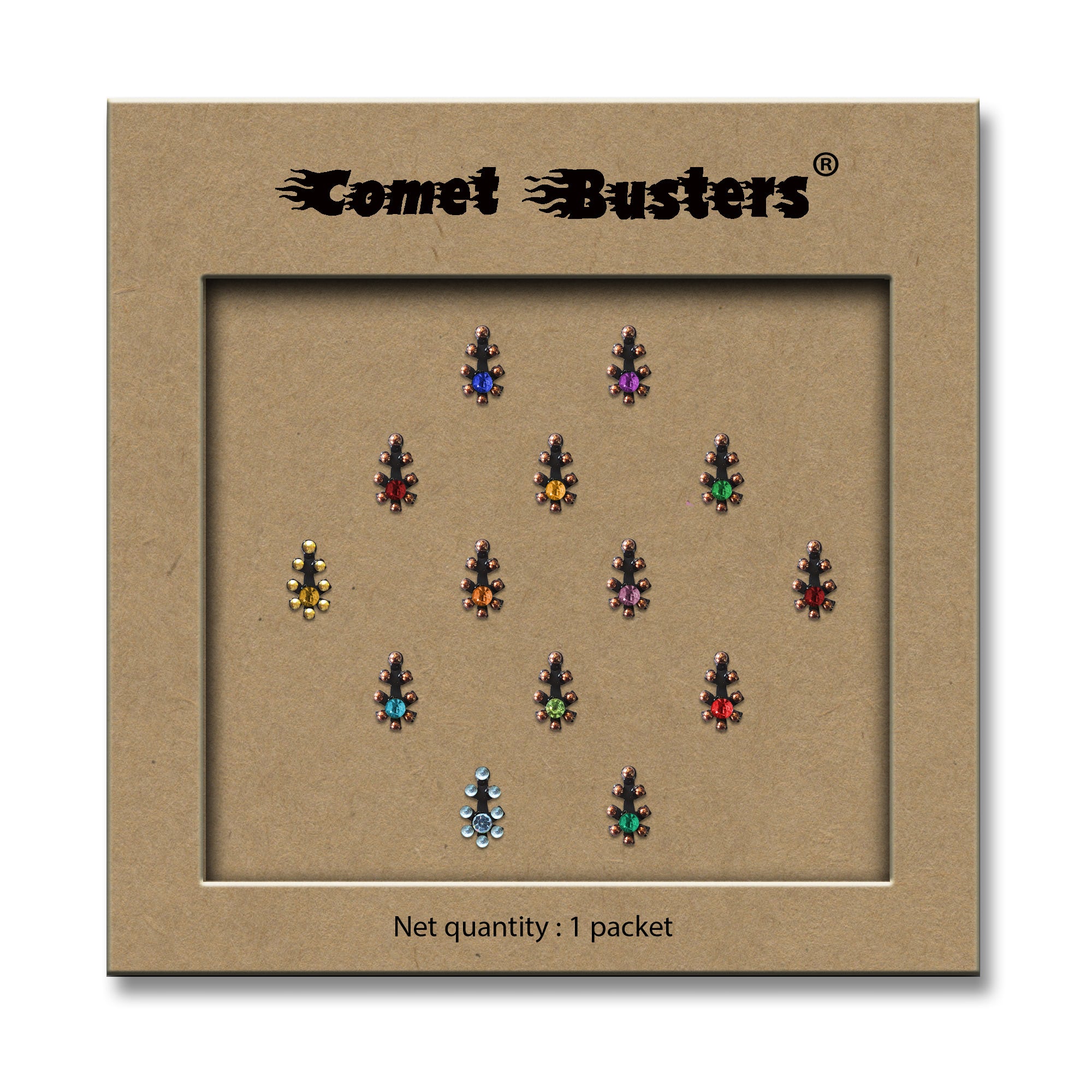 Comet Busters® Multicolor Artistic Abstract Bindis – PVC, Diamond, Shiny Beads – Handcrafted, Reusable & Skin-Friendly Bindis for Party Wear (8mm) – Forehead Bindi Stickers for Women & Girls – BIN2192