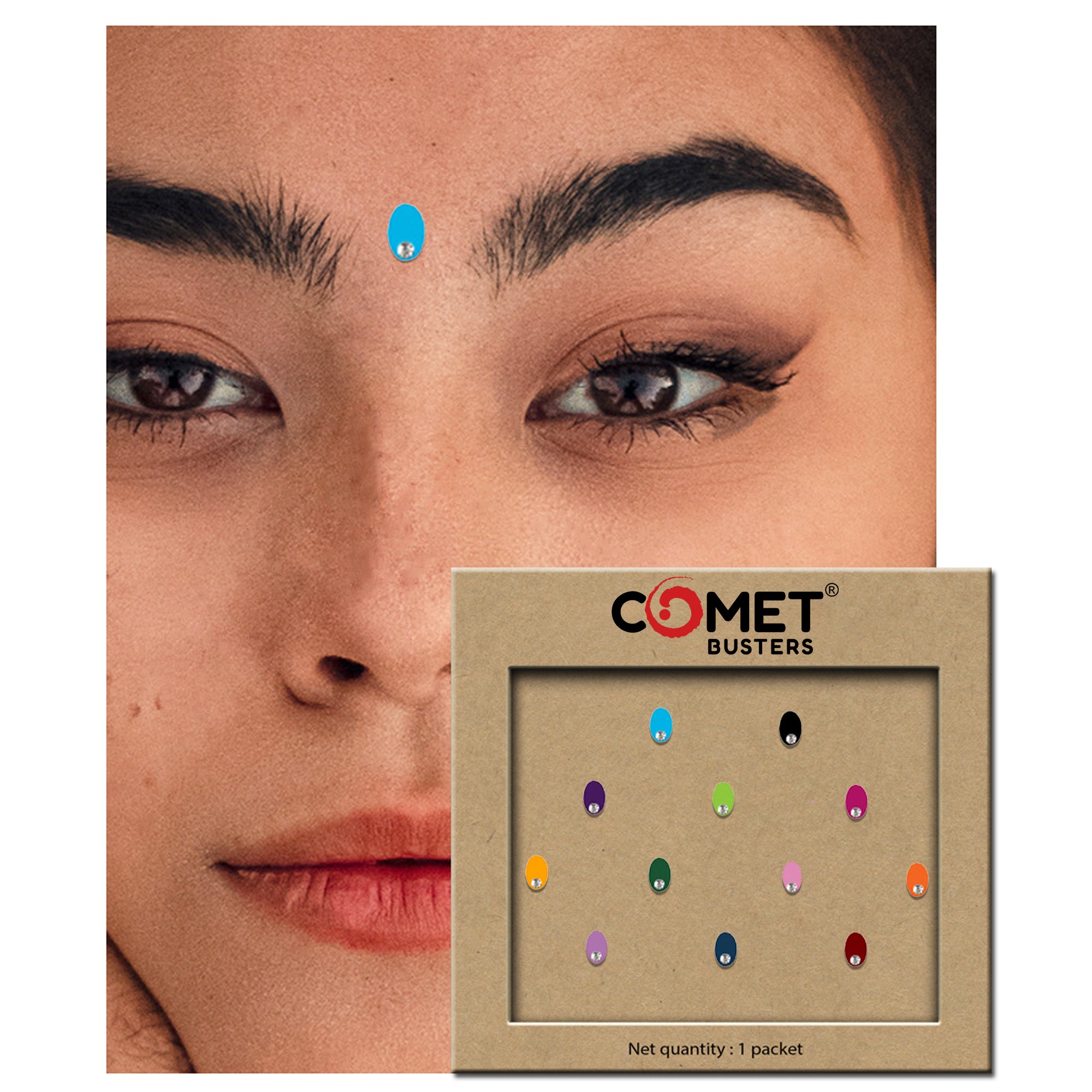 Comet Busters® Multicolor Oval – Diamond, Velvet – Handcrafted, Reusable & Skin-Friendly Bindis for Casual Wear (7mm) – Forehead Bindi Stickers for Women & Girls – BIN1026
