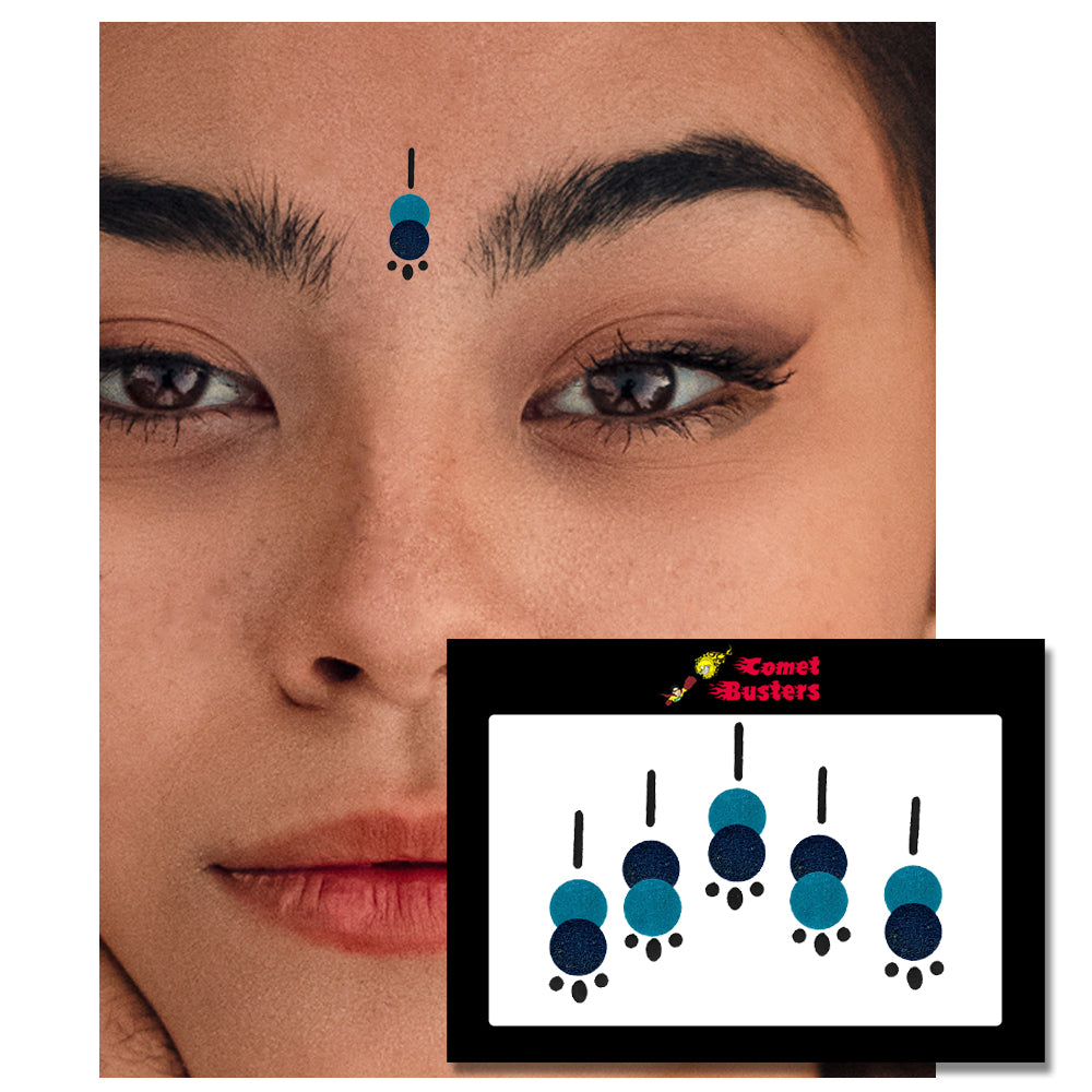 Comet Busters® Blue, Black, Multicolor Fusion Abstract Bindis – Velvet – Handcrafted, Reusable & Skin-Friendly Bindis for Casual Wear (20mm) – Forehead Bindi Stickers for Women & Girls – BIN1745
