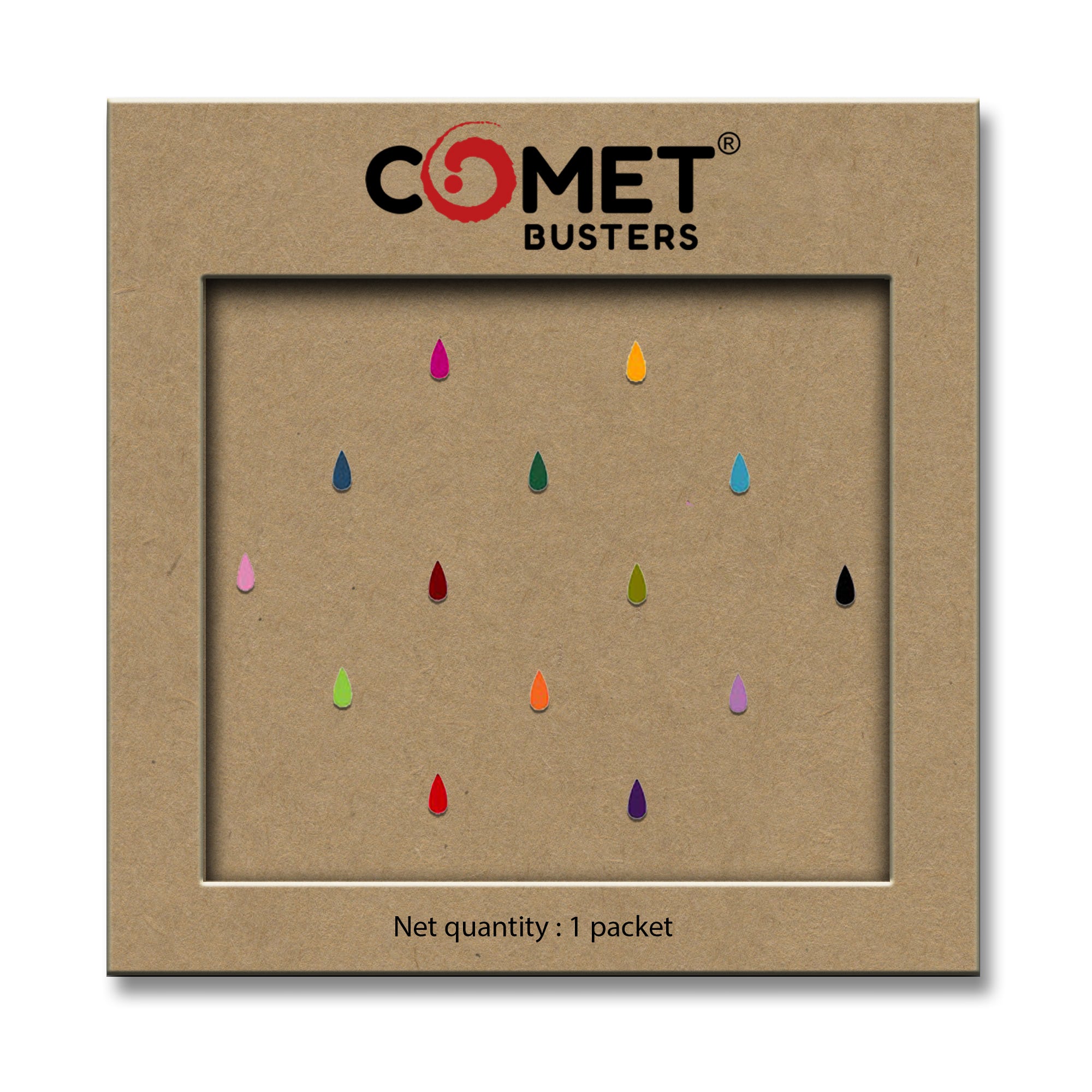 Comet Busters® Multicolor Tear Drop – Velvet – Handcrafted, Reusable & Skin-Friendly Bindis for Casual Wear (5mm) – Forehead Bindi Stickers for Women & Girls – BIN1001