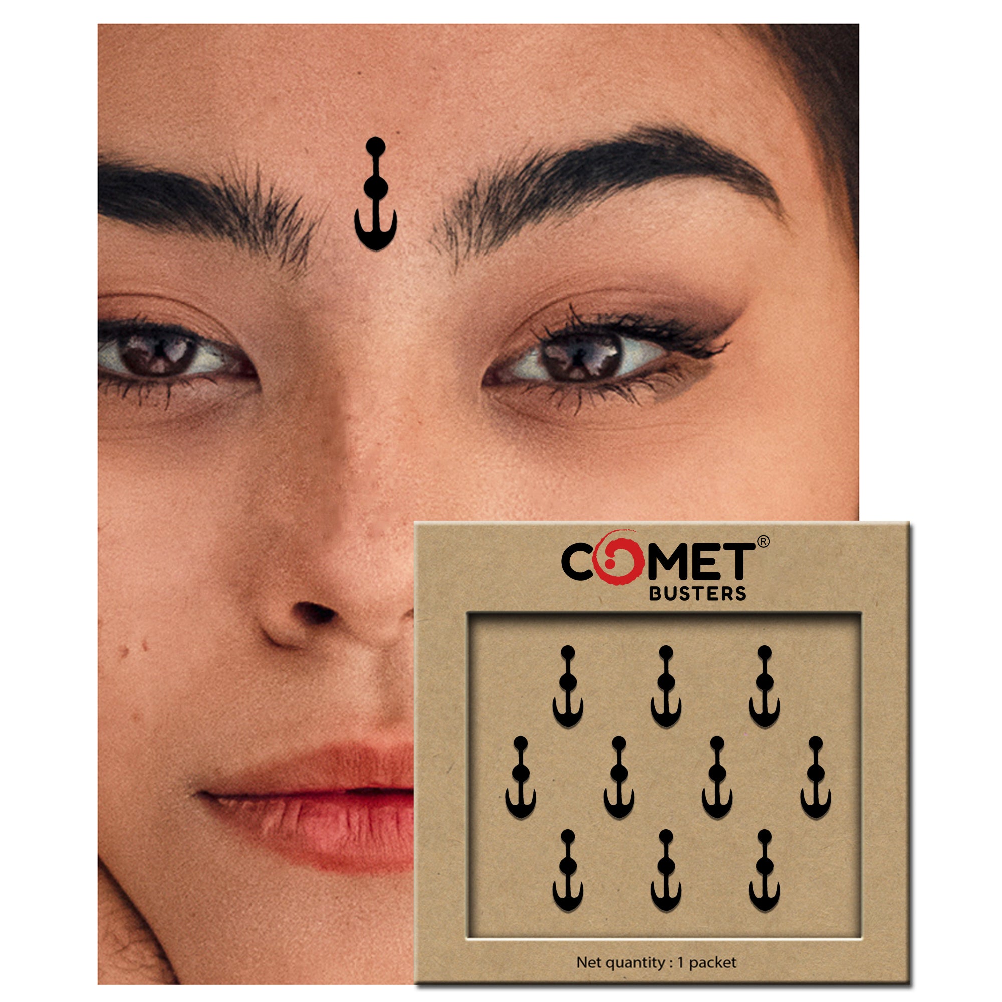 Comet Busters® Black Designer Classic Bindis – Handcrafted, Reusable, Skin-Safe Indian Forehead Stickers for Women
