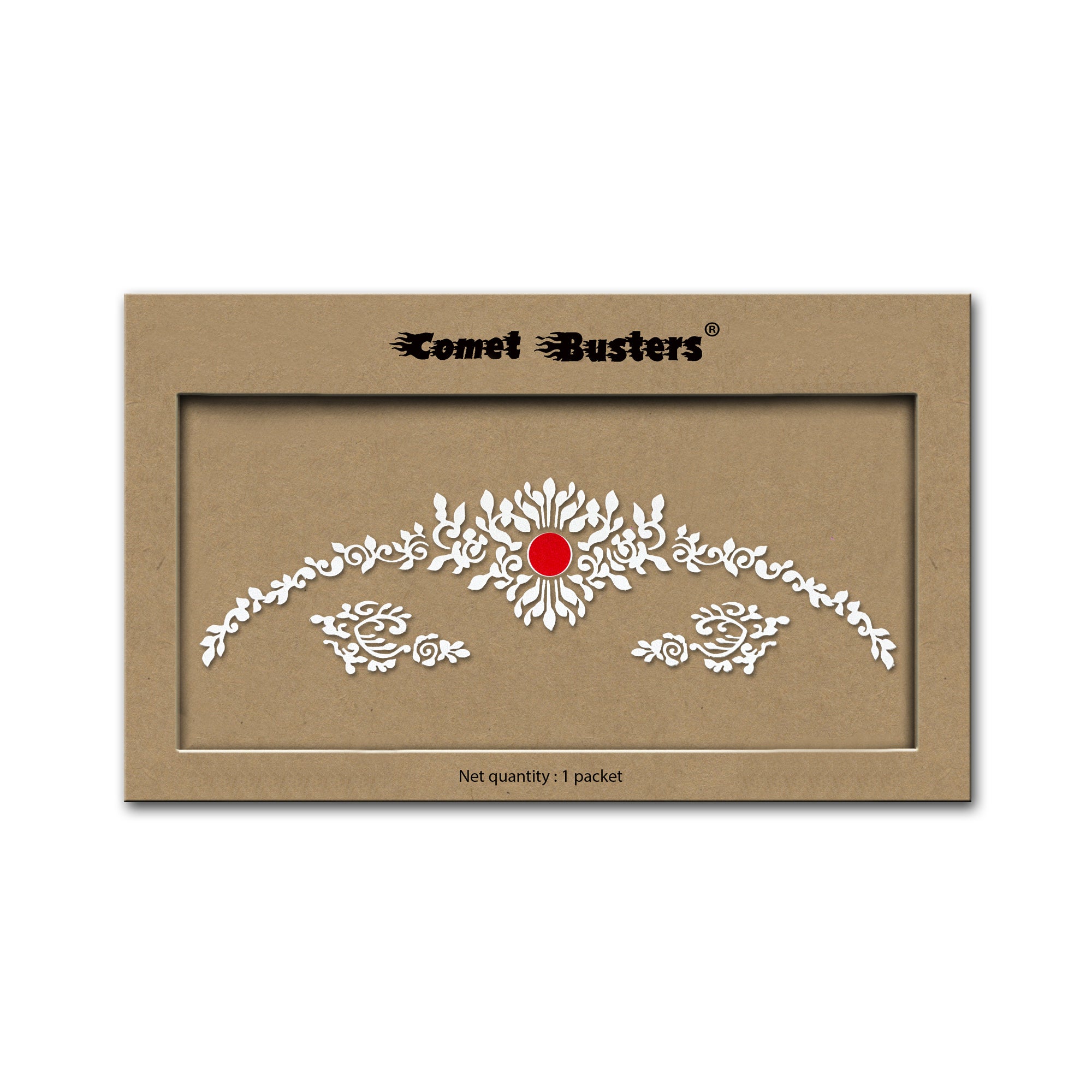 Comet Busters® Red, White, Multicolor Fusion Abstract Bindis, Bengali – PVC, Velvet – Handcrafted, Reusable & Skin-Friendly Bindis for Bridal Wear (Free Size) – Forehead Bindi Stickers for Women & Girls – BIN1971
