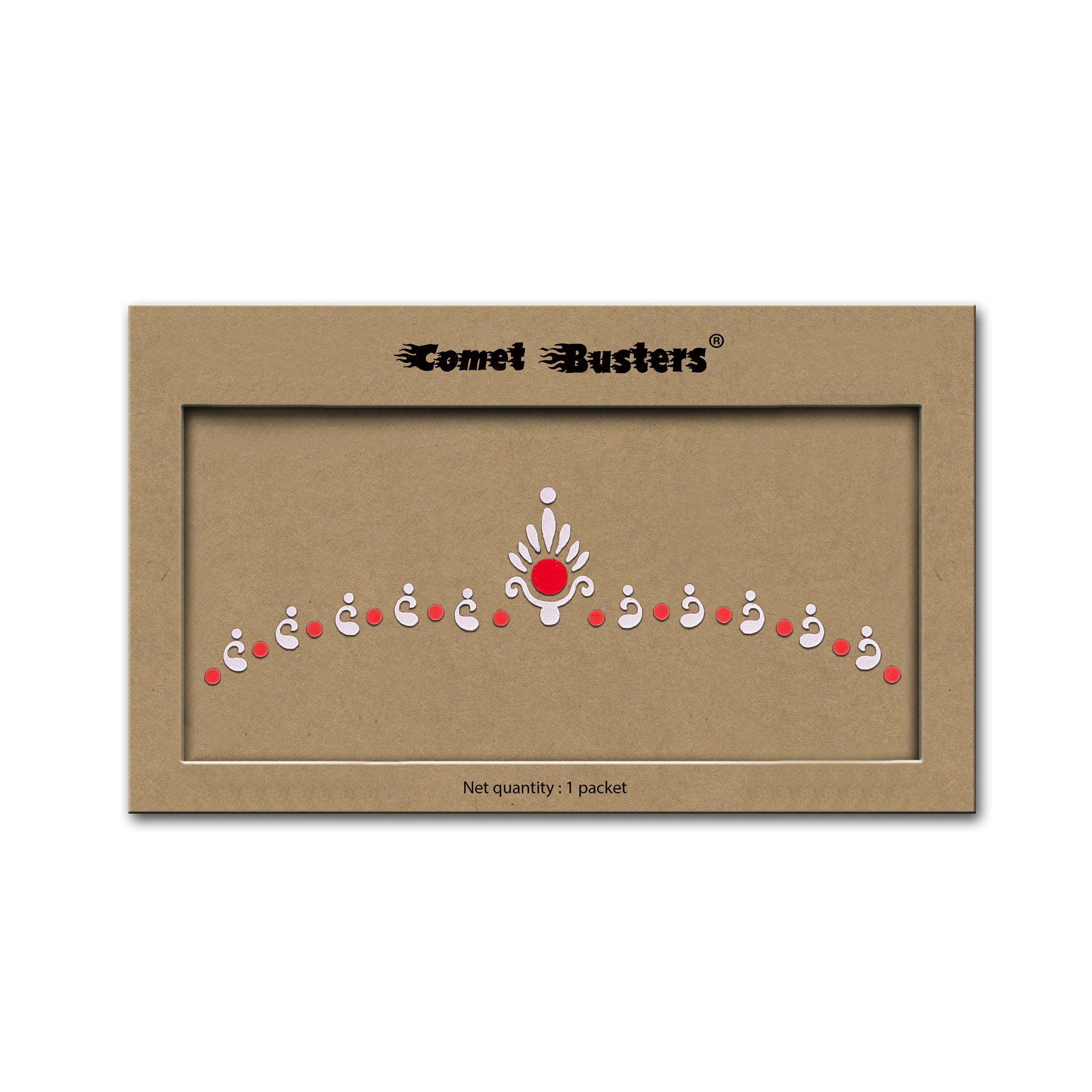 Comet Busters® Red, White, Multicolor Fusion Abstract Bindis, Bengali – PVC, Velvet – Handcrafted, Reusable & Skin-Friendly Bindis for Bridal Wear (Free Size) – Forehead Bindi Stickers for Women & Girls – BIN1972