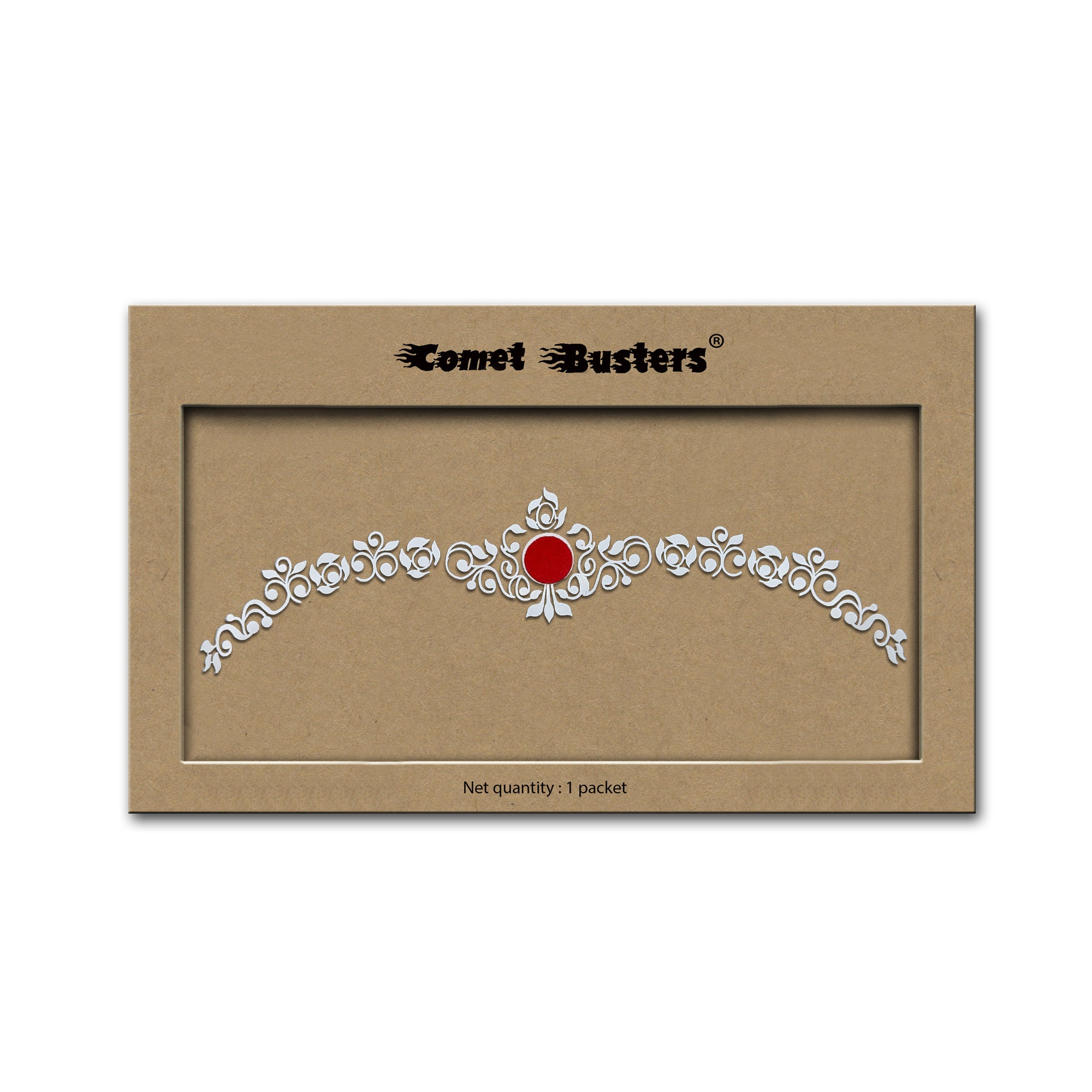 Comet Busters® Red, White, Multicolor Fusion Abstract Bindis, Bengali – PVC, Velvet – Handcrafted, Reusable & Skin-Friendly Bindis for Bridal Wear (Free Size) – Forehead Bindi Stickers for Women & Girls – BIN1983