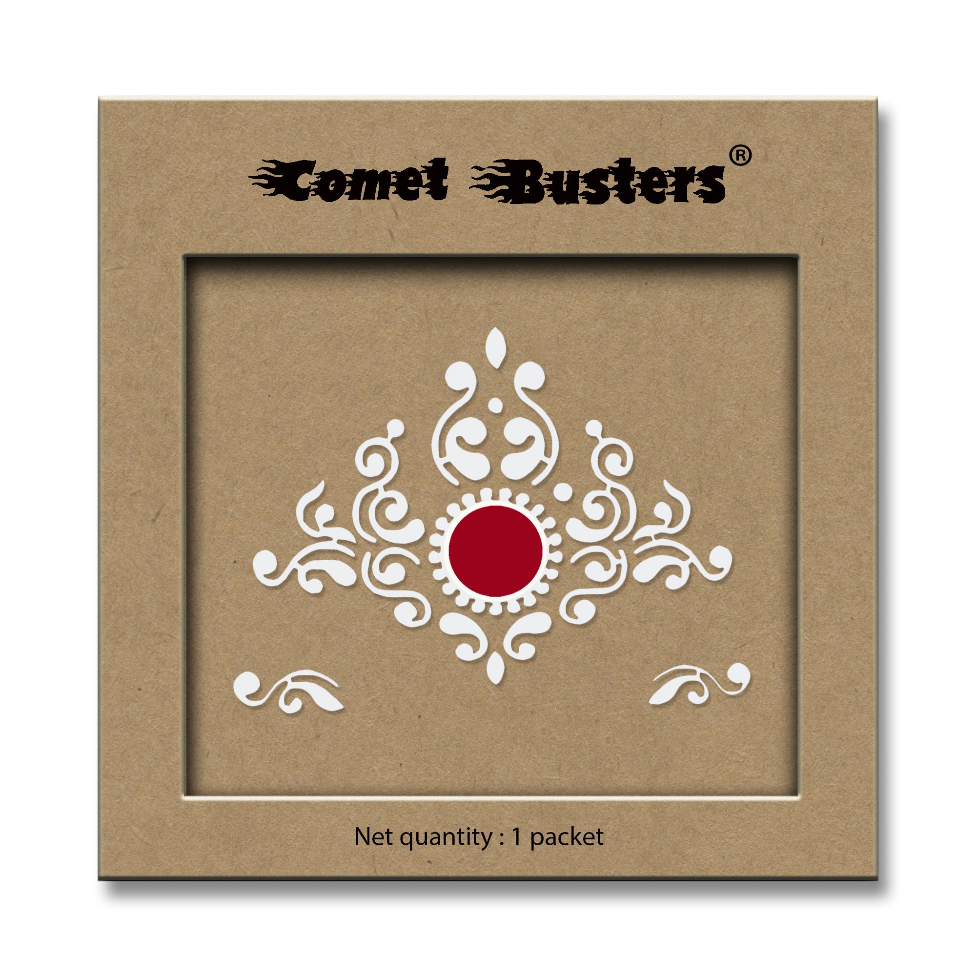 Comet Busters® White, Red, Multicolor Fusion Abstract Bindis, Bengali – PVC, Velvet – Handcrafted, Reusable & Skin-Friendly Bindis for Bridal Wear (Free Size) – Forehead Bindi Stickers for Women & Girls – BIN2051
