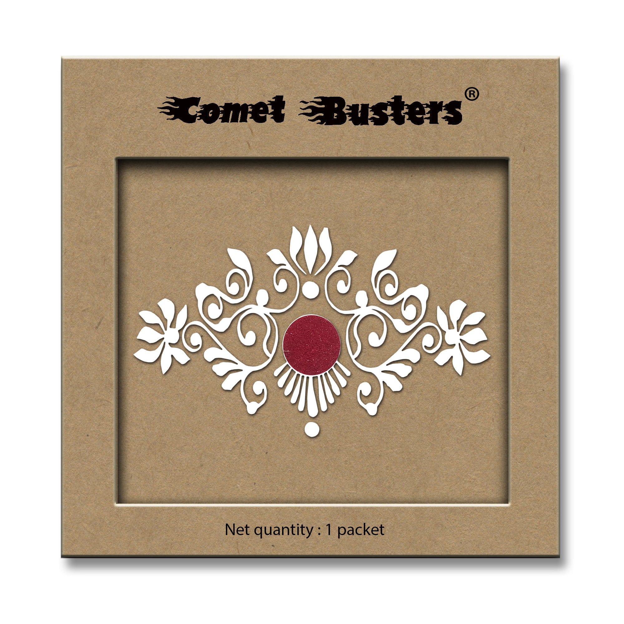 Comet Busters® White, Red, Multicolor Fusion Abstract Bindis, Bengali – PVC, Velvet – Handcrafted, Reusable & Skin-Friendly Bindis for Bridal Wear (Free Size) – Forehead Bindi Stickers for Women & Girls – BIN2286