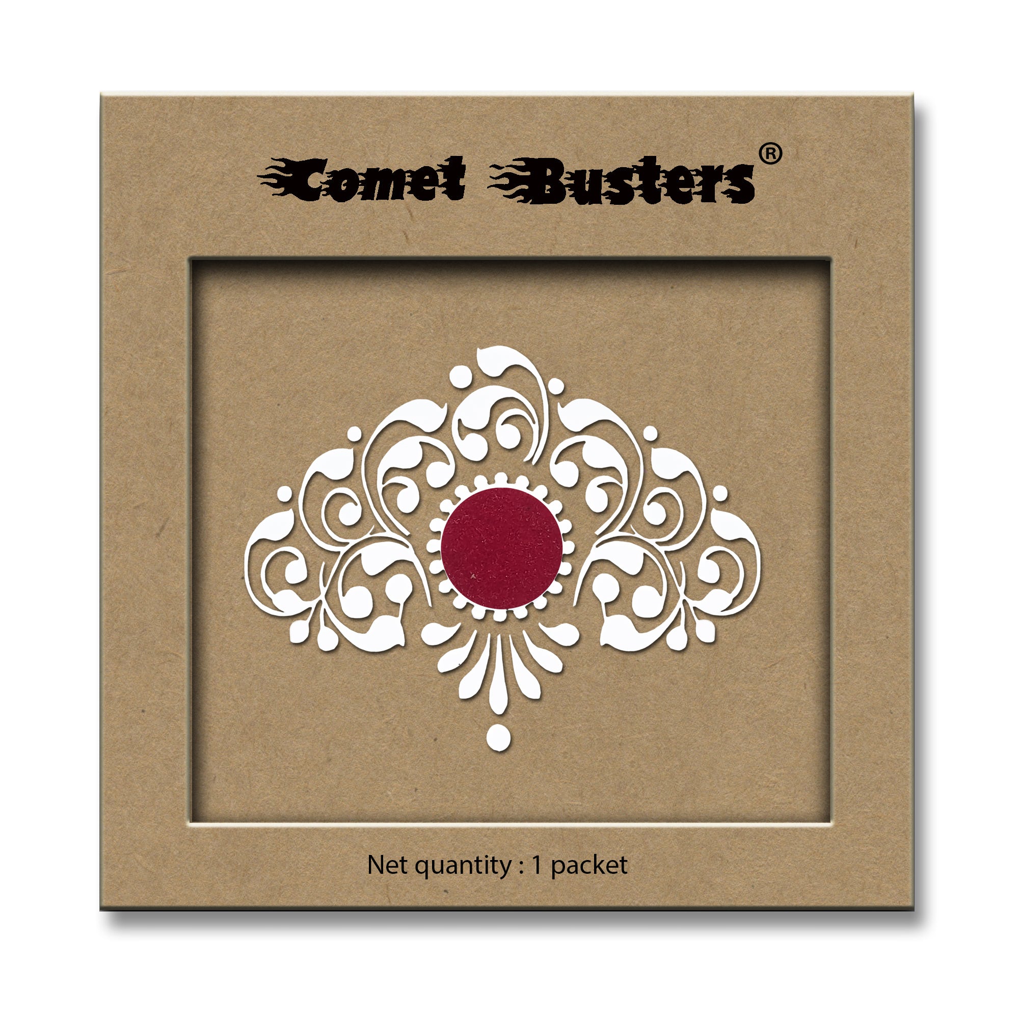 Comet Busters® White, Red, Multicolor Fusion Abstract Bindis, Bengali – PVC, Velvet – Handcrafted, Reusable & Skin-Friendly Bindis for Bridal Wear (Free Size) – Forehead Bindi Stickers for Women & Girls – BIN2299