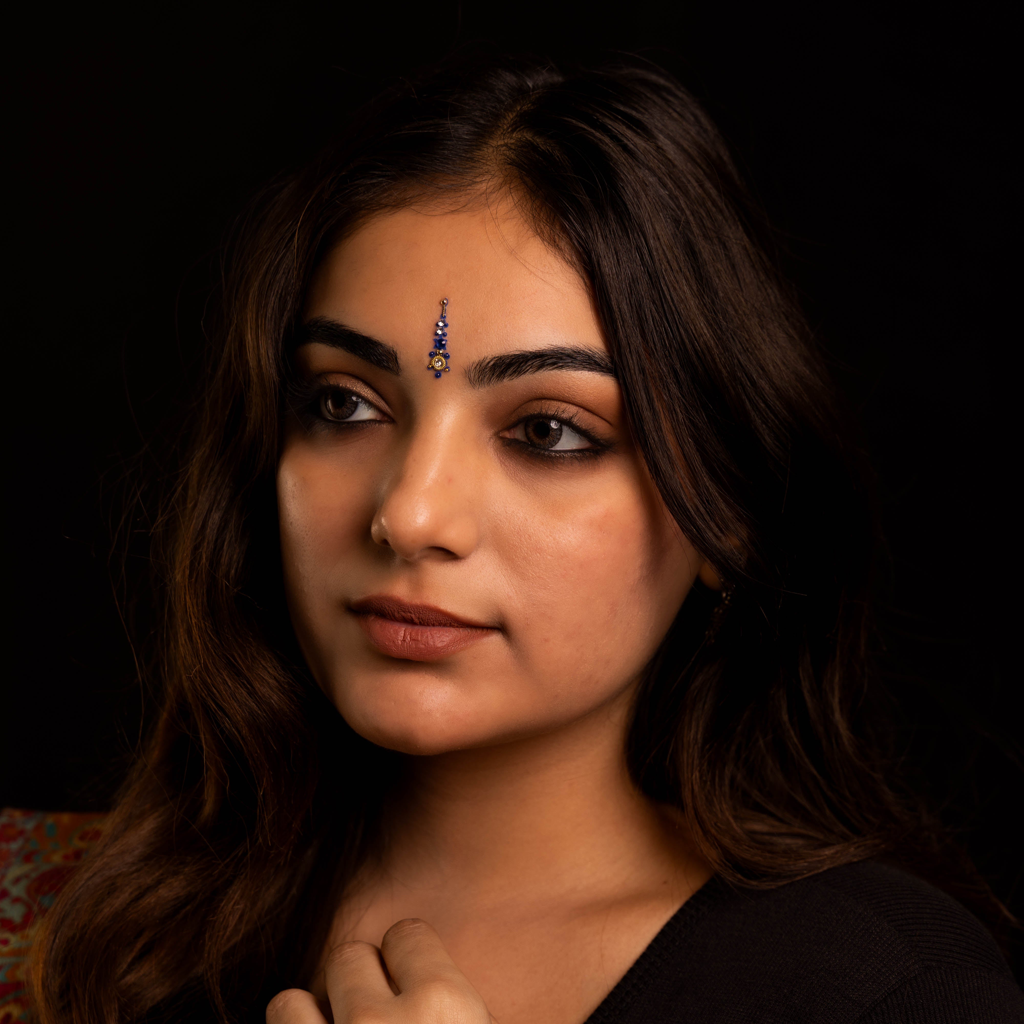 • To apply, gently remove the bindi from its backing and place it between the eyebrows.