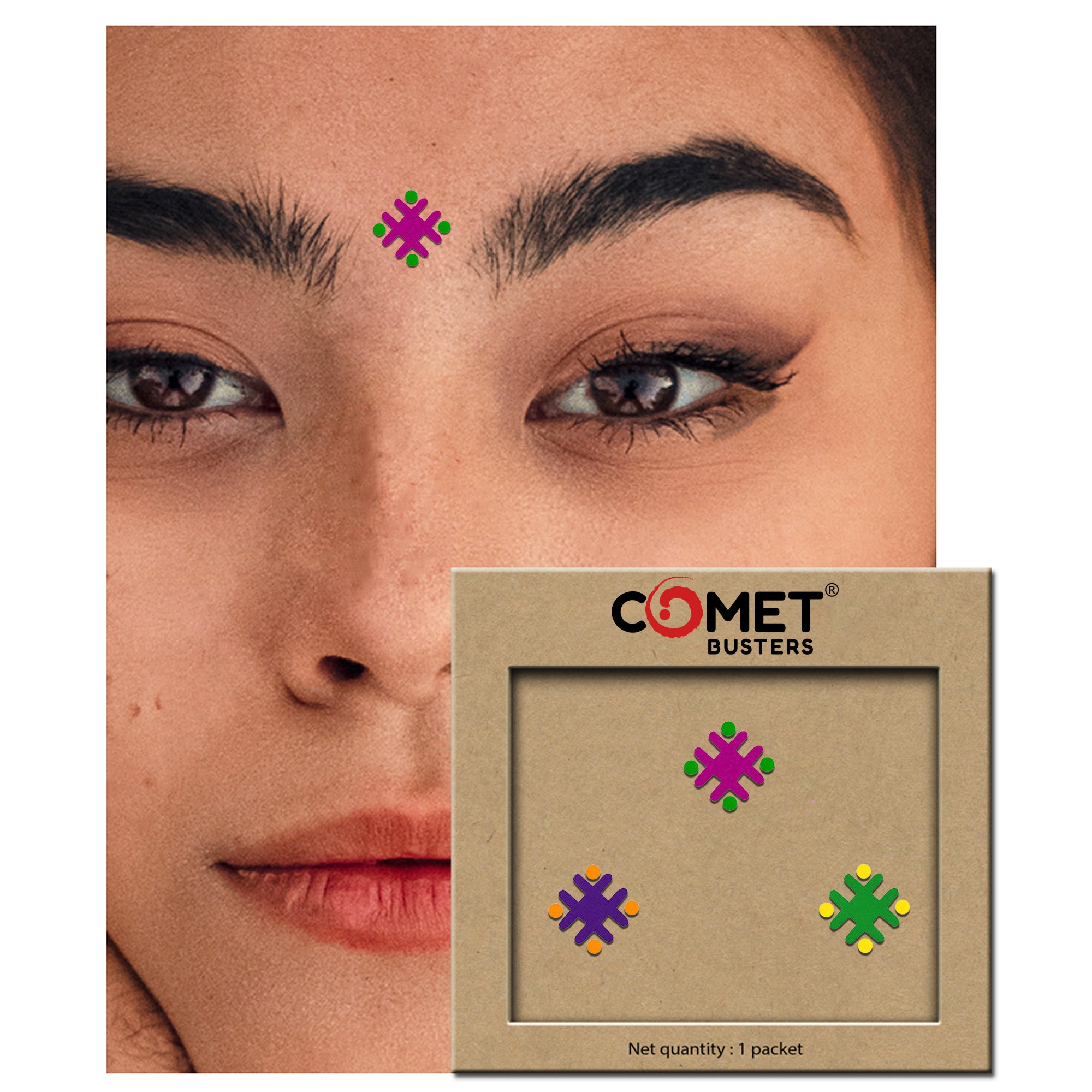 Comet Busters® Blue, Green, Purple, Multicolor Fusion Abstract Bindis – PVC – Handcrafted, Reusable & Skin-Friendly Bindis for Casual Wear (12mm) – Forehead Bindi Stickers for Women & Girls – BIN1046