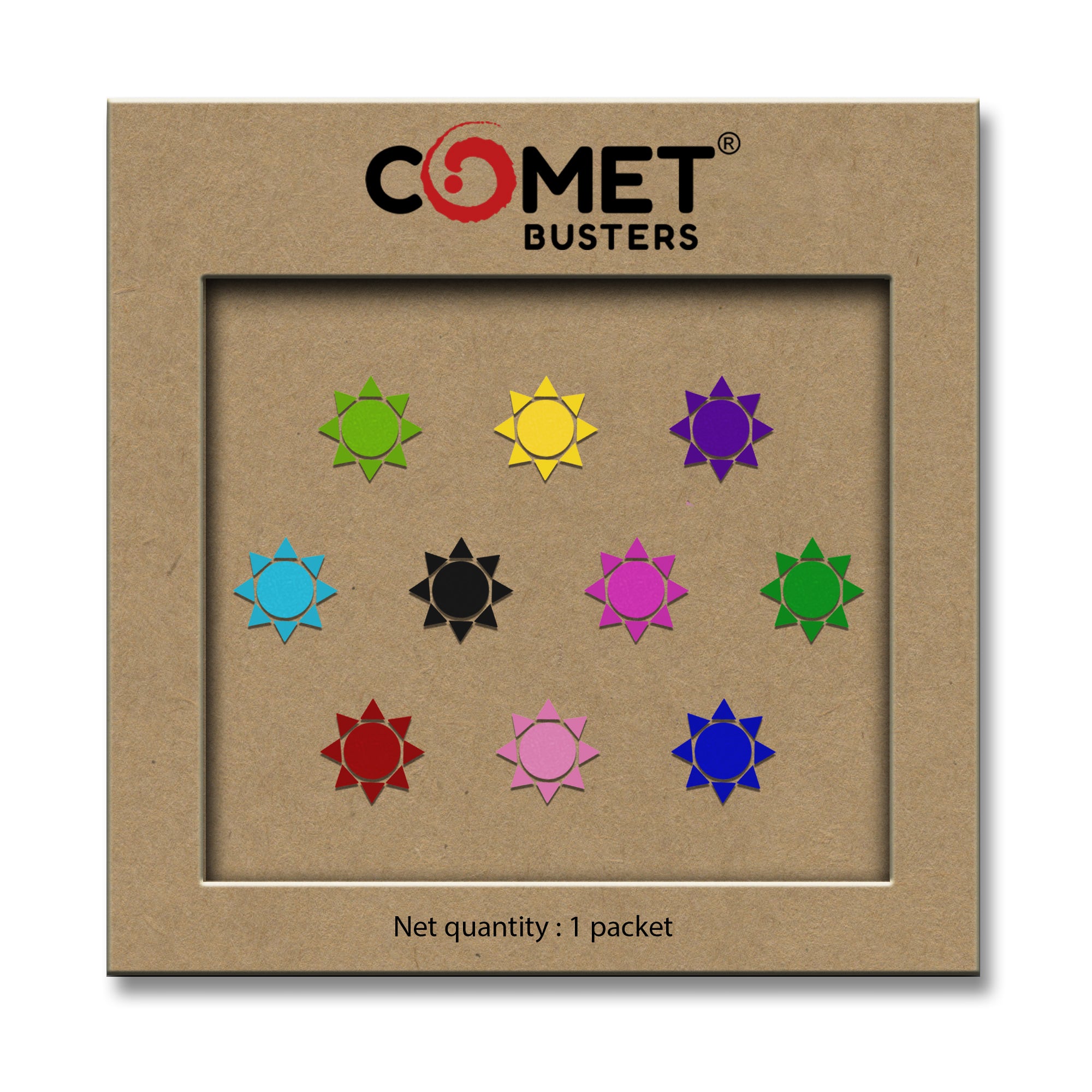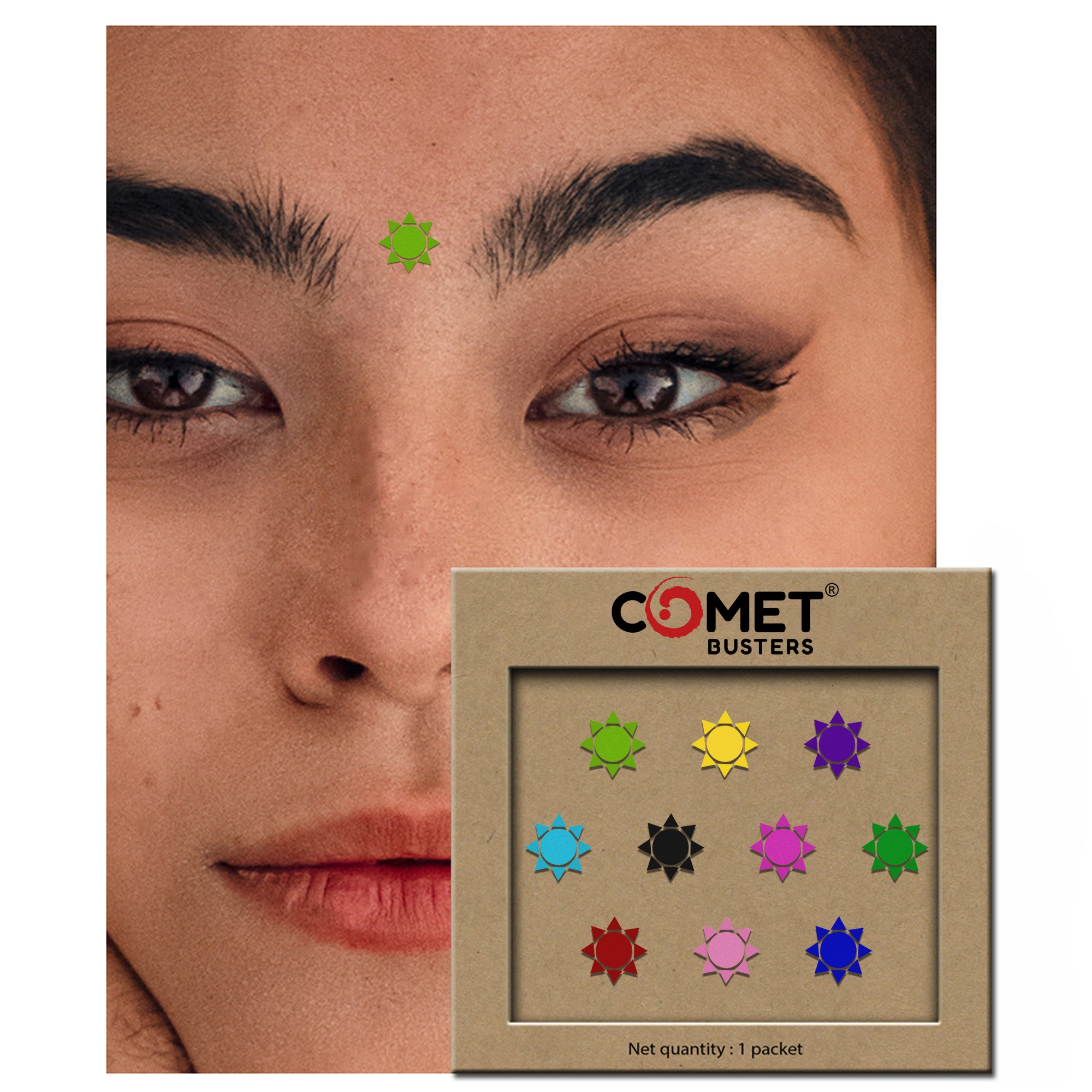 Comet Busters® Multicolor Sun – PVC – Handcrafted, Reusable & Skin-Friendly Bindis for Casual Wear (10mm) – Forehead Bindi Stickers for Women & Girls – BIN278
