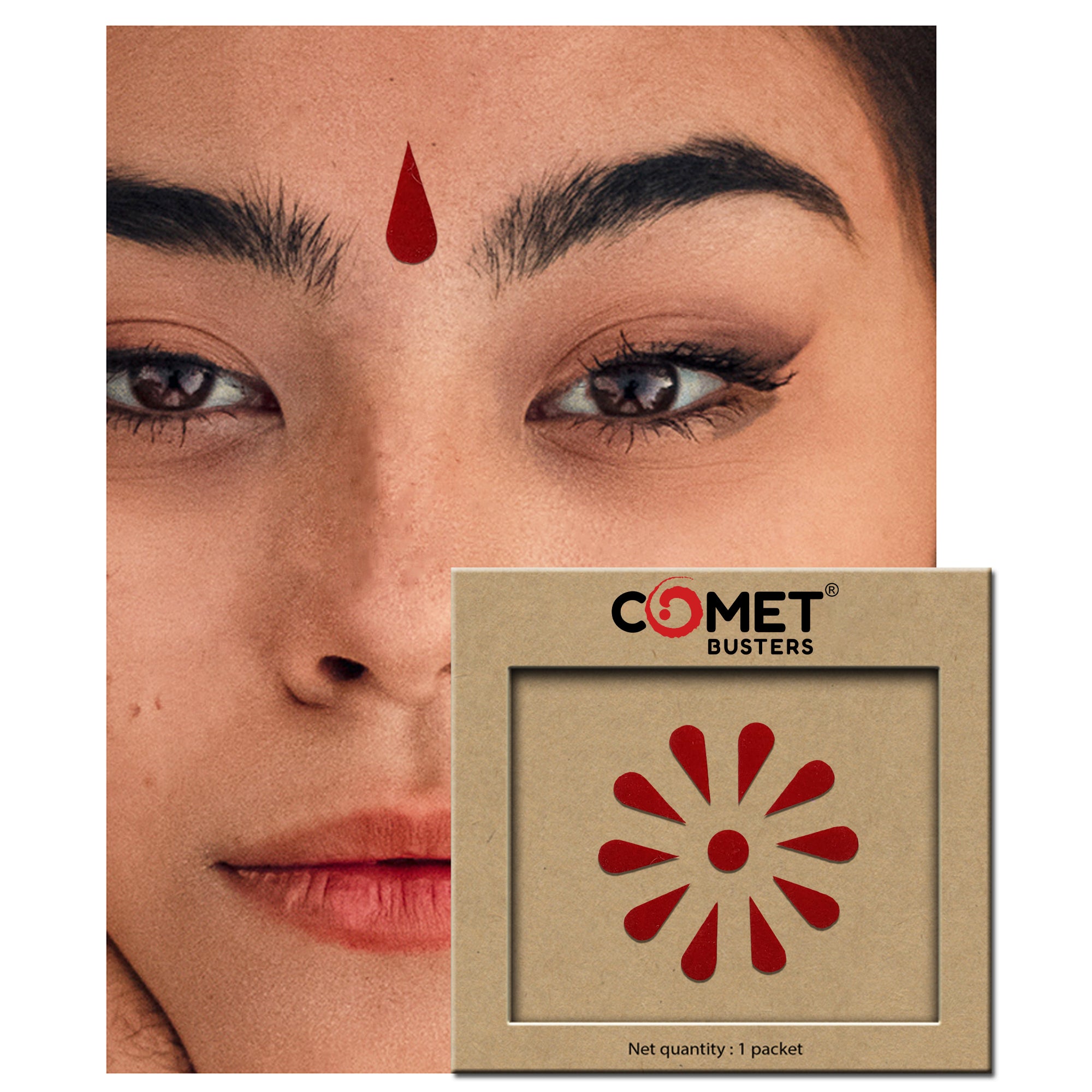 Comet Busters® Red Tear Drop – Velvet – Handcrafted, Reusable & Skin-Friendly Bindis for Casual Wear (10, 5mm) – Forehead Bindi Stickers for Women & Girls – BIN1487