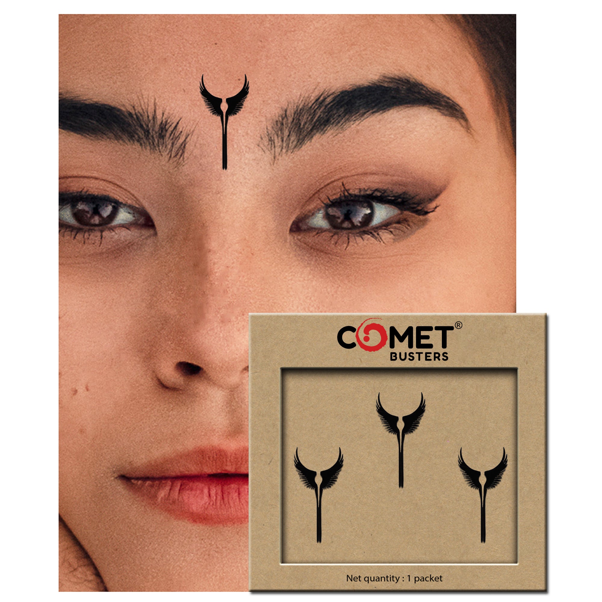 Comet Busters® Black Fusion Abstract Bindis – PVC – Handcrafted, Reusable & Skin-Friendly Bindis for Casual Wear (22mm) – Forehead Bindi Stickers for Women & Girls – BIN1089