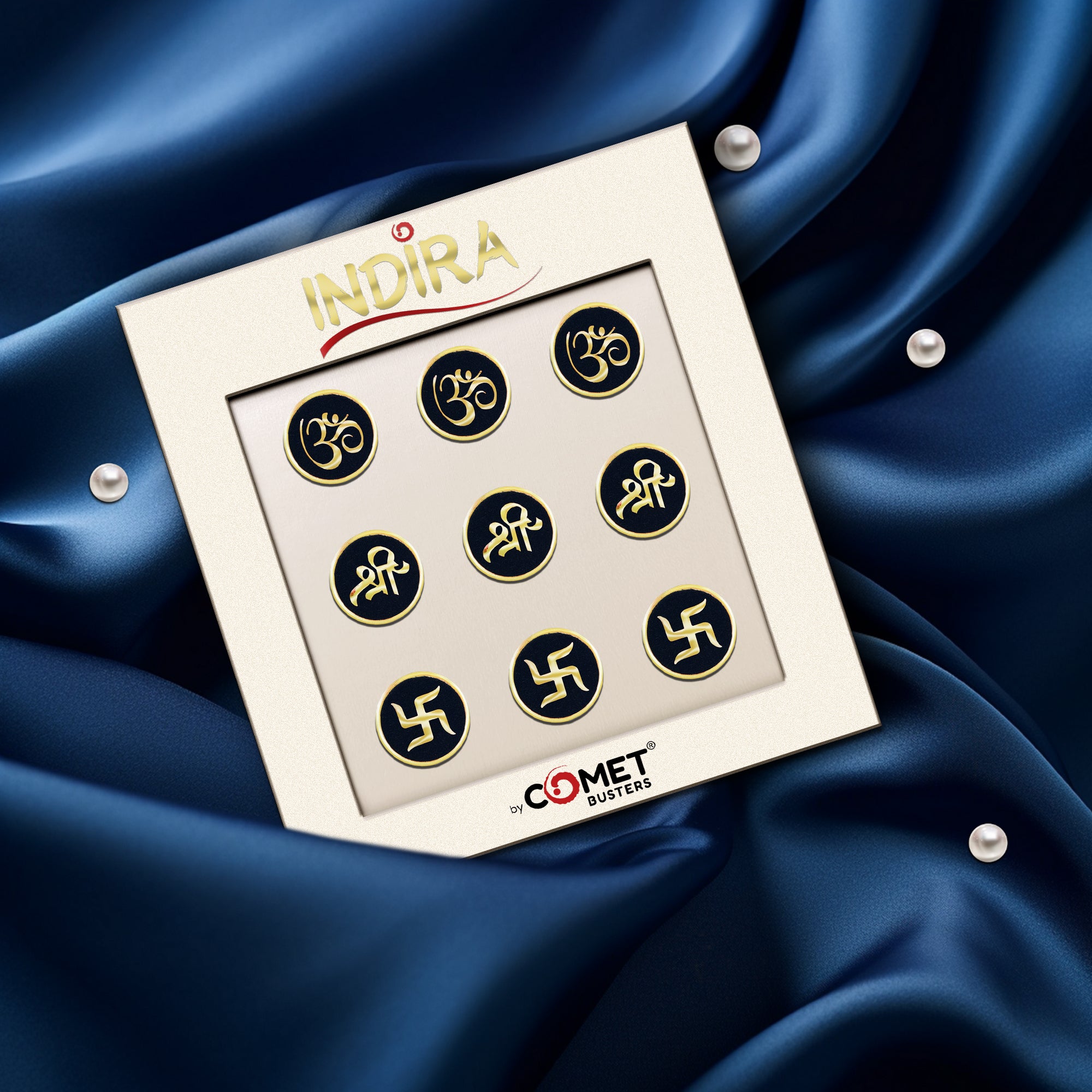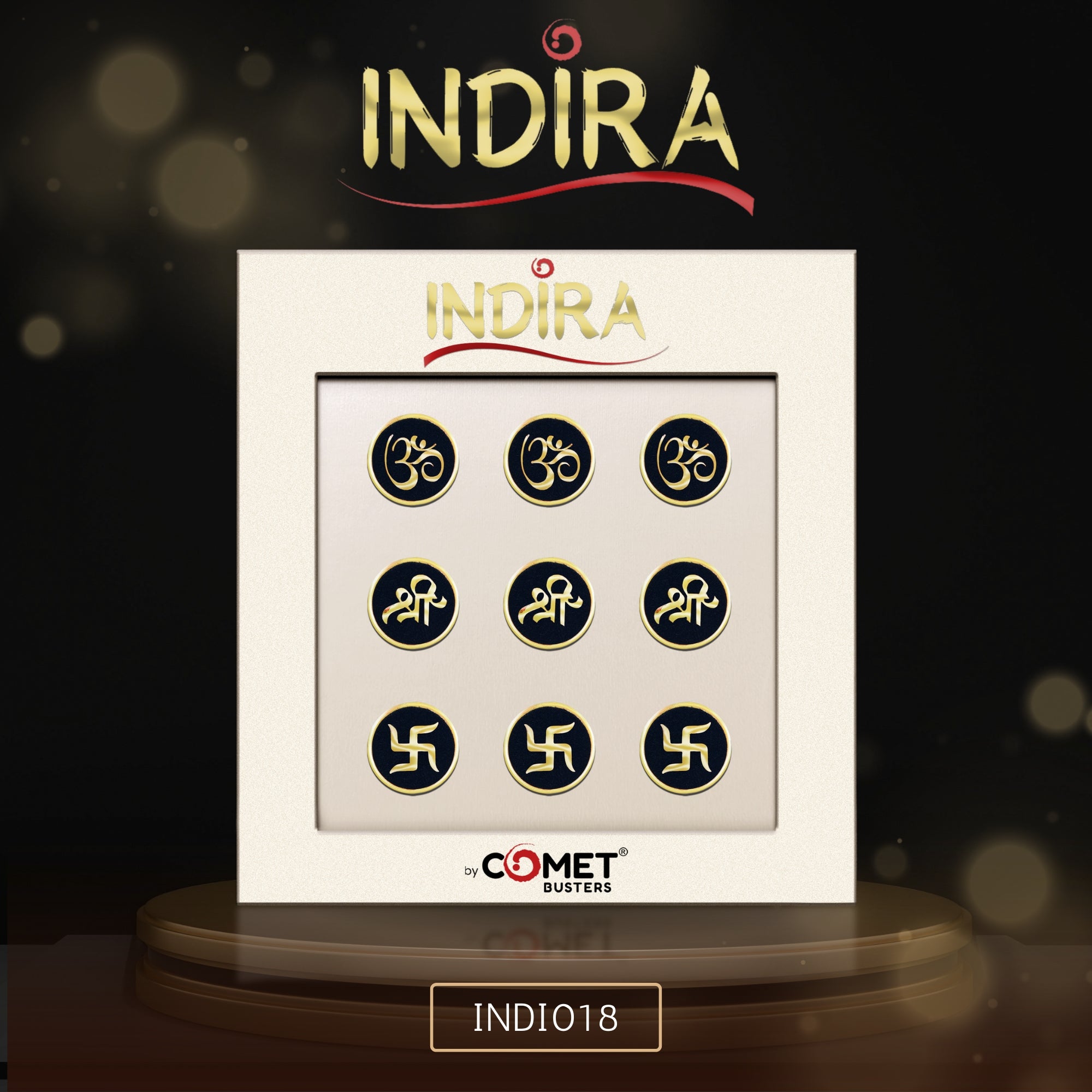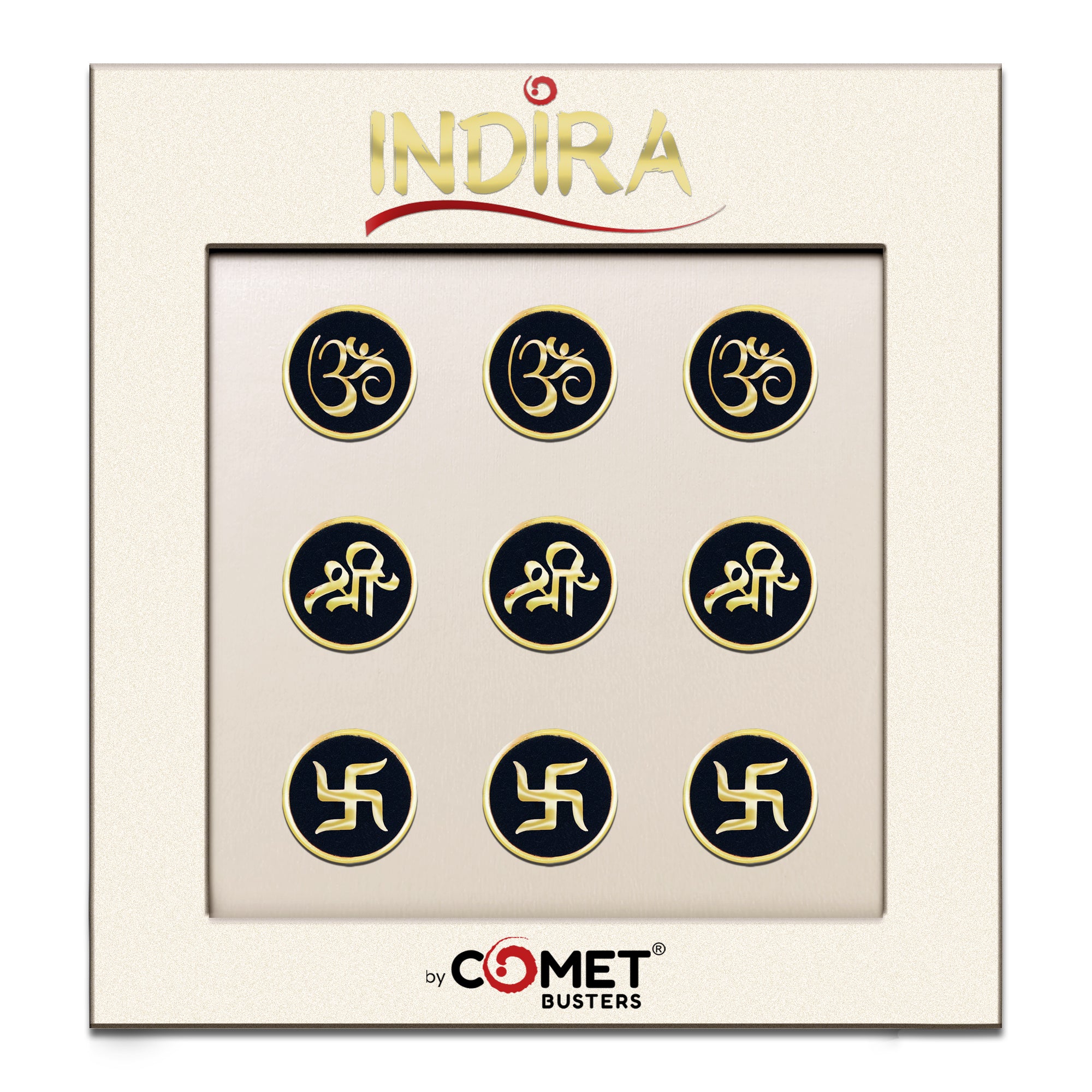 Elevate your spiritual style with Comet Busters® Indira Spiritual Bindis (15mm) — a luxurious collection designed for women who embrace both tradition and elegance.