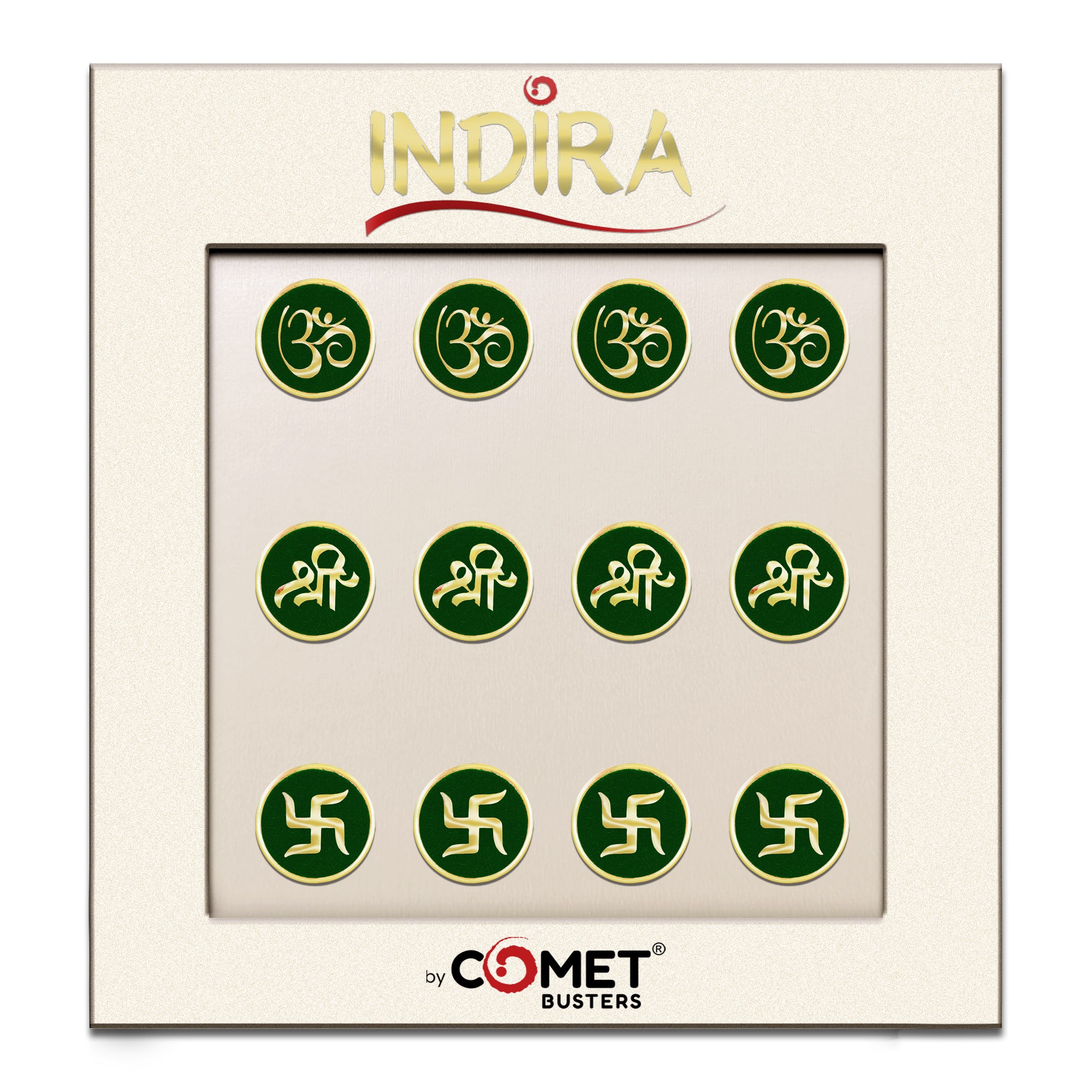 Celebrate devotion and elegance with the Comet Busters® Indira Spiritual Bindis (13mm) — a premium green velvet collection designed to reflect faith with grace.