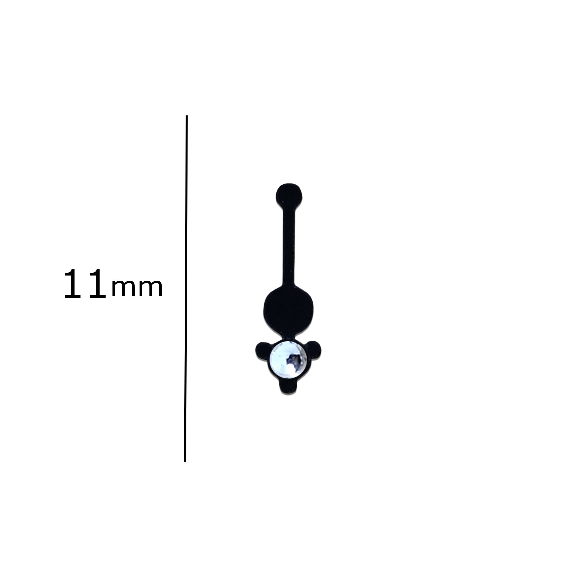 This vertical stick-on bindi features a sleek black design with a sparkling white crystal centerpiece, giving your style an elegant and timeless appeal. Measuring approximately 11mm in height, it is perfect for festive occasions, weddings, parties, or daily wear.