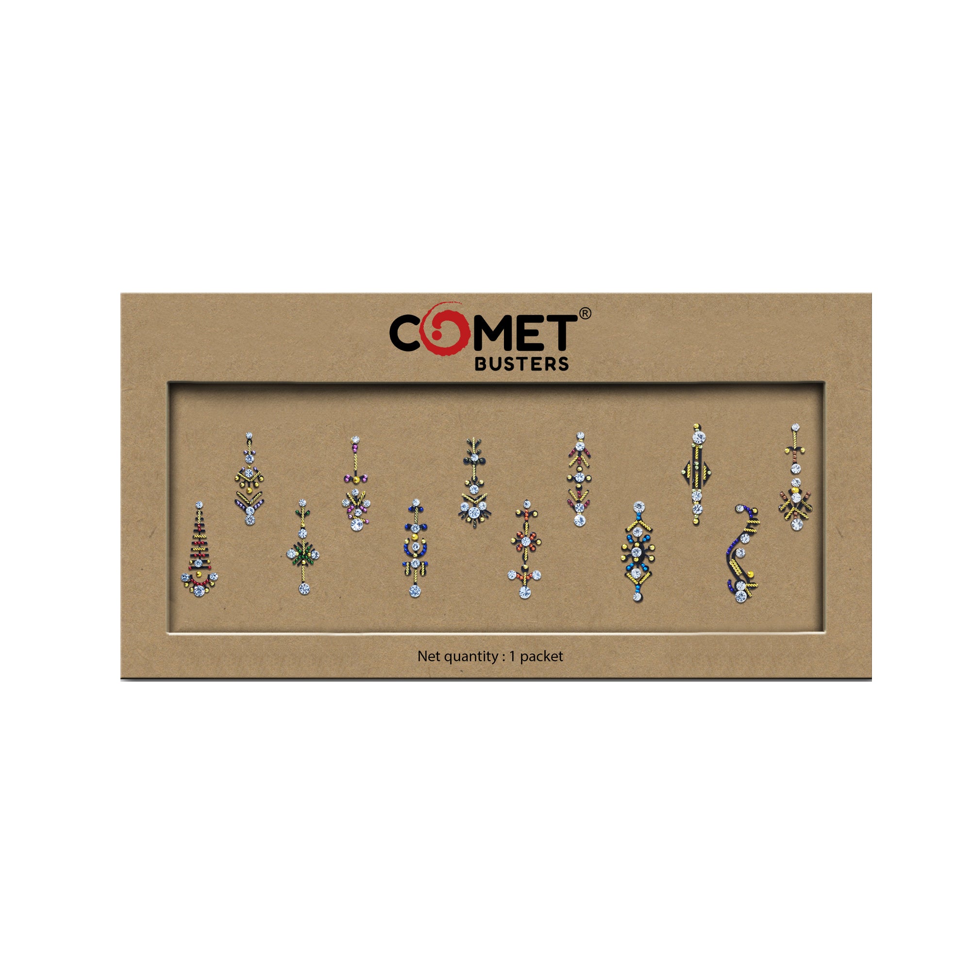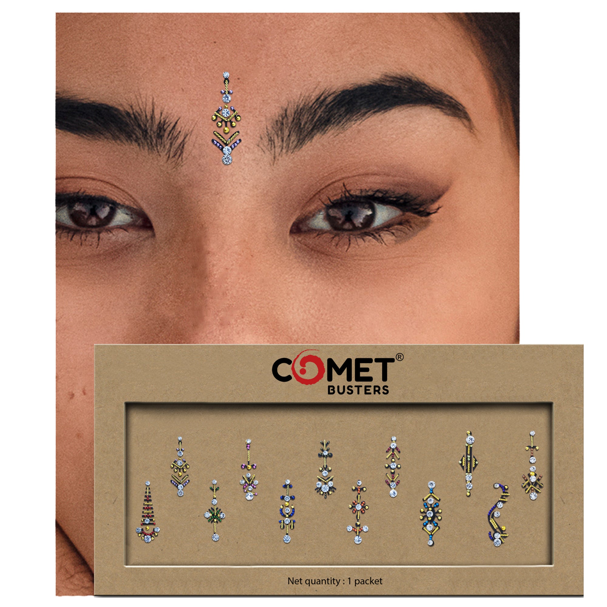 Comet Busters® Multicolor, Black Artistic Abstract Bindis – Diamond, PVC – Handcrafted, Reusable & Skin-Friendly Bindis for Partywear Wear (25mm) – Forehead Bindi Stickers for Women & Girls – BIN311