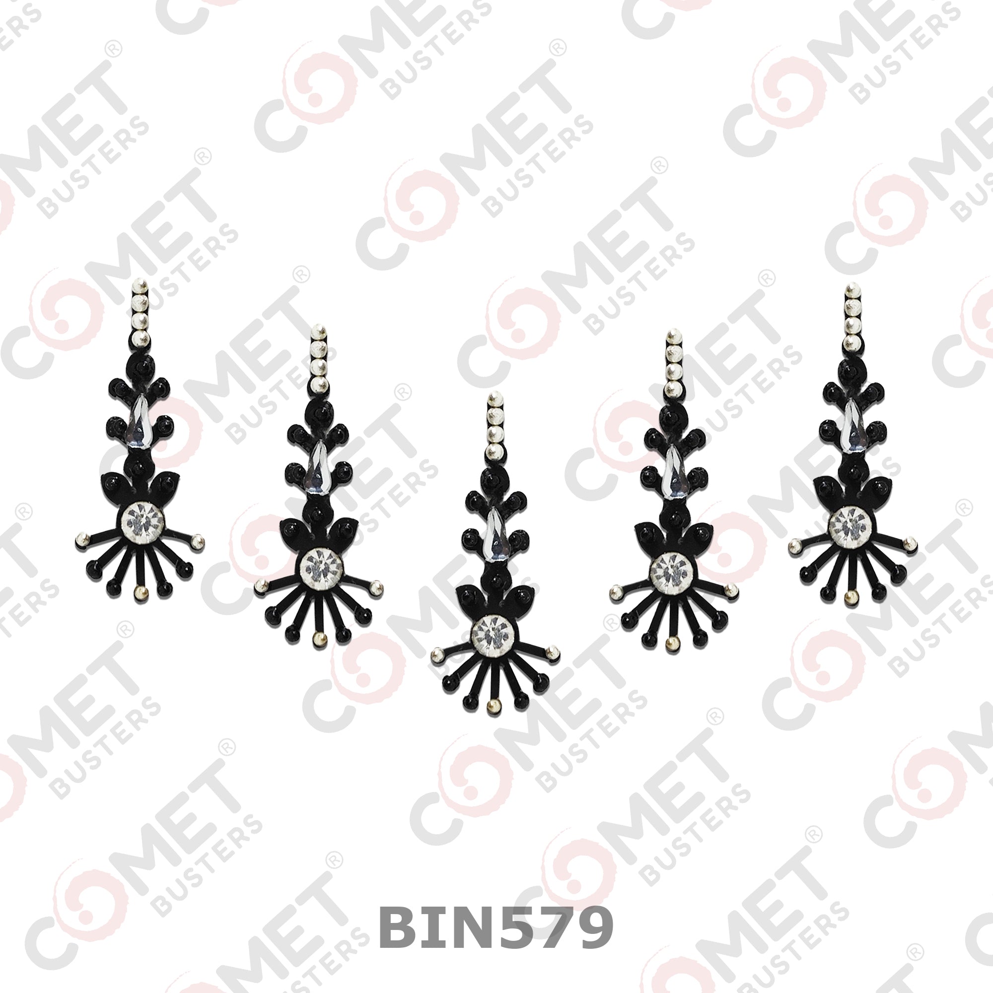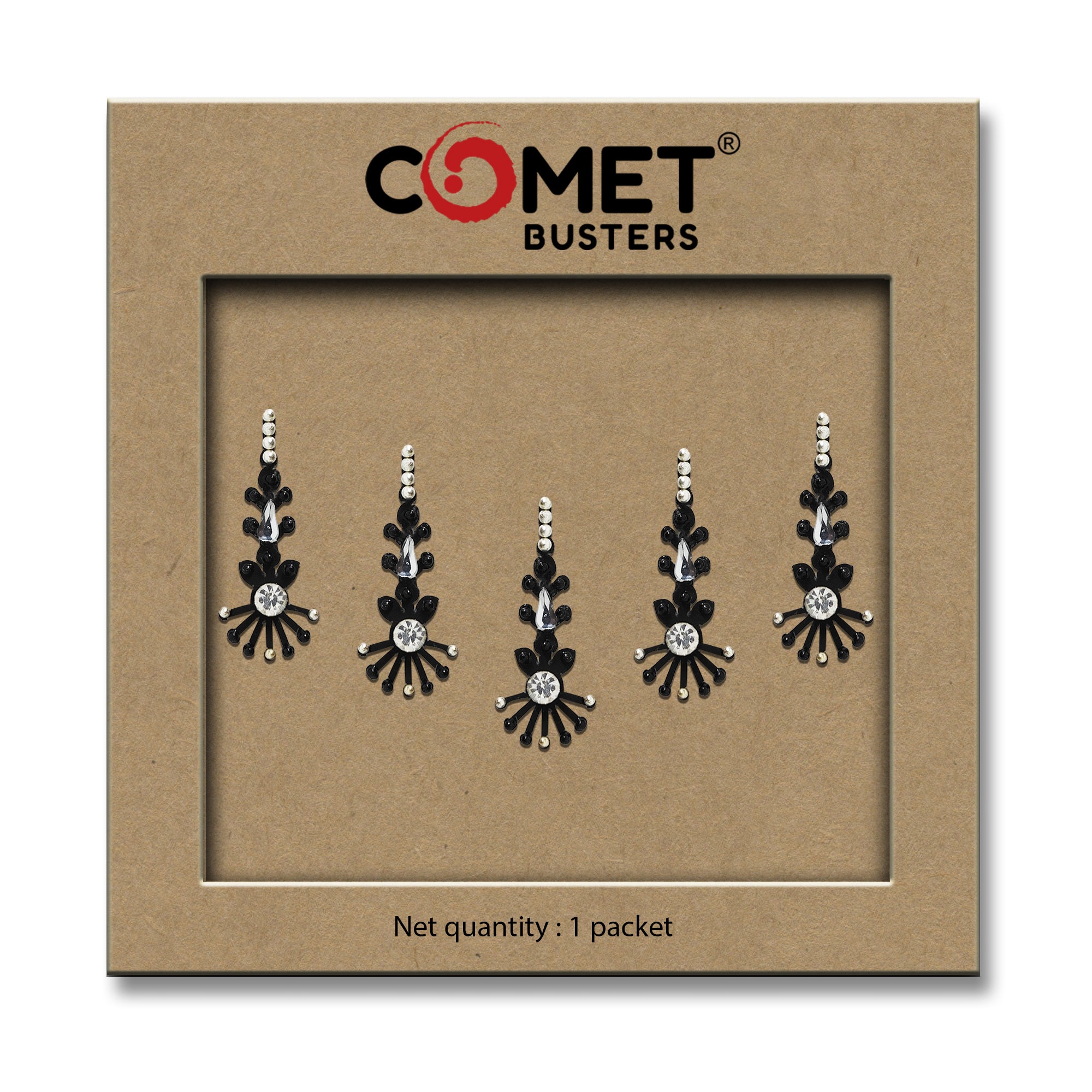 Comet Busters® Black Artistic Abstract Bindis – Diamond, Shiny Beads – Handcrafted, Reusable & Skin-Friendly Bindis for Bridal Wear (20mm) – Forehead Bindi Stickers for Women & Girls – BIN579