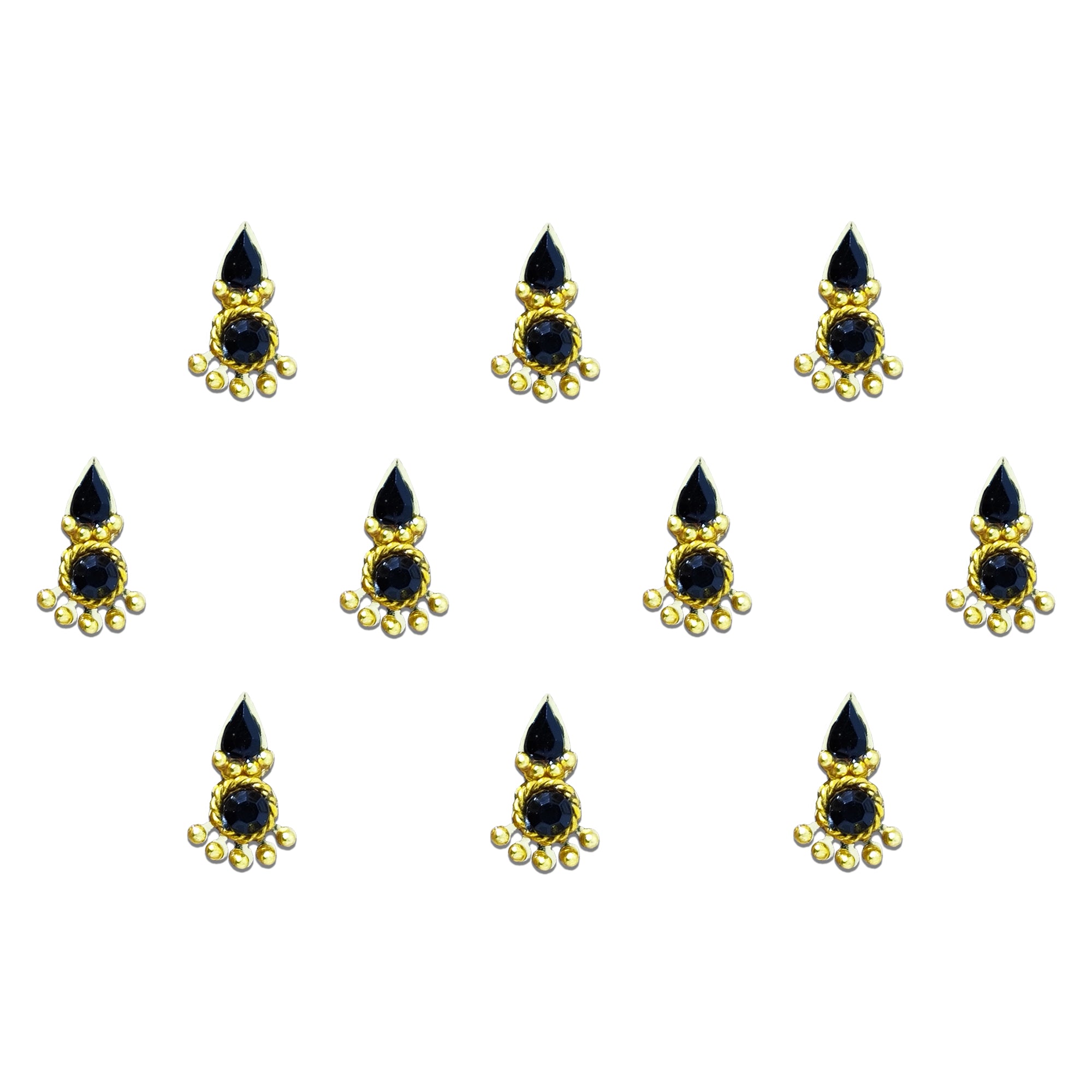 Comet Busters® Black, Gold, Multicolor Artistic Abstract Bindis – Shiny Beads – Handcrafted, Reusable & Skin-Friendly Bindis for Partywear Wear (10mm) – Forehead Bindi Stickers for Women & Girls – BIN751