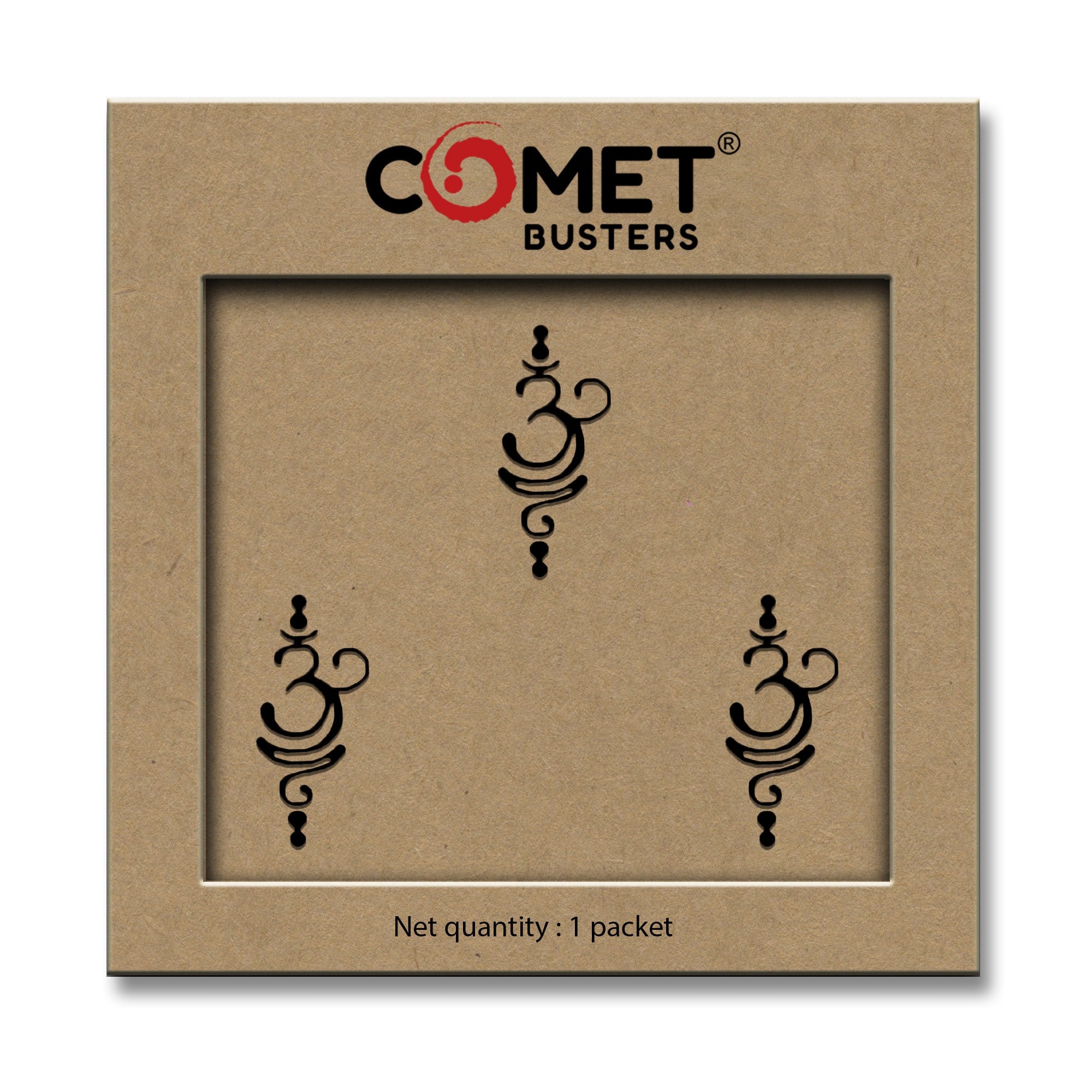 Comet Busters® Black Spiritual OM Bindis – PVC – Handcrafted, Reusable & Skin-Friendly Bindis for Casual Wear (20mm) – Forehead Bindi Stickers for Women & Girls – BIN508