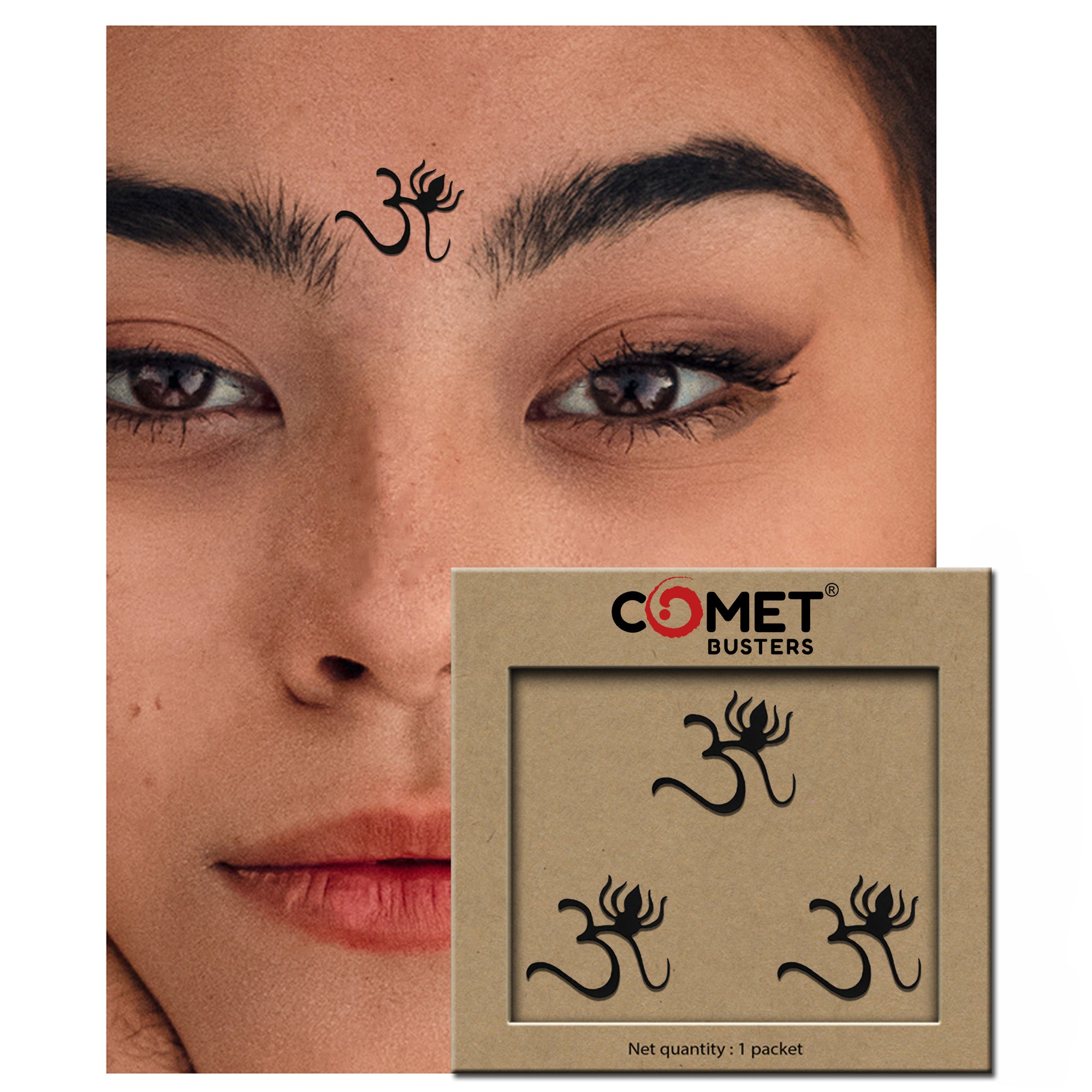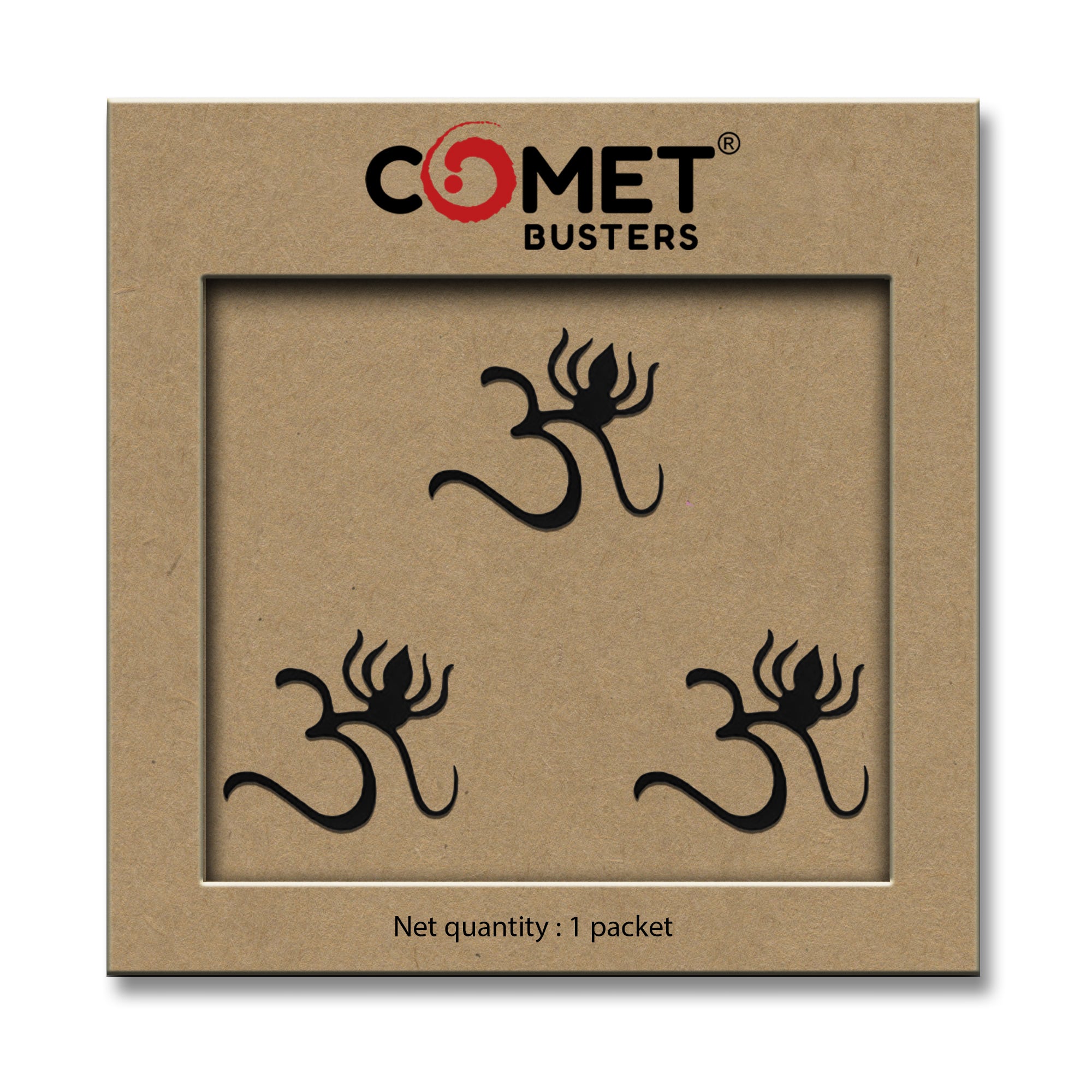 Comet Busters® Black Spiritual Om Bindis – PVC – Handcrafted, Reusable & Skin-Friendly Bindis for Casual Wear (20mm) – Forehead Bindi Stickers for Women & Girls – BIN507
